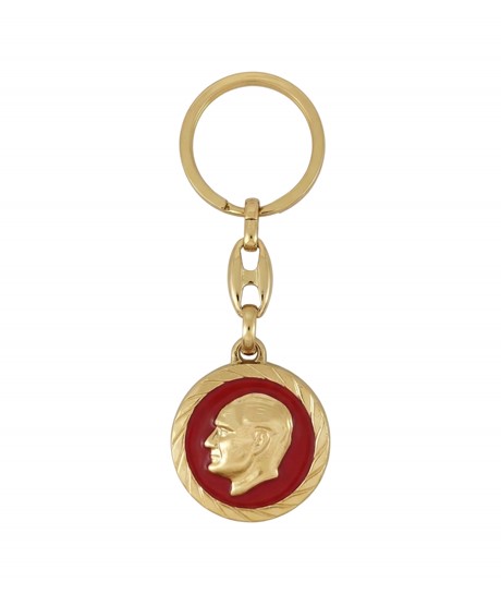 Mustafa Kemal Atatürk Profil Figürlü Yuvarlak Gold Metal Anahtarlık