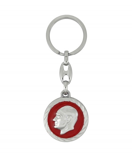 Mustafa Kemal Atatürk Kabartmalı Yuvarlak Krom Metal Anahtarlık