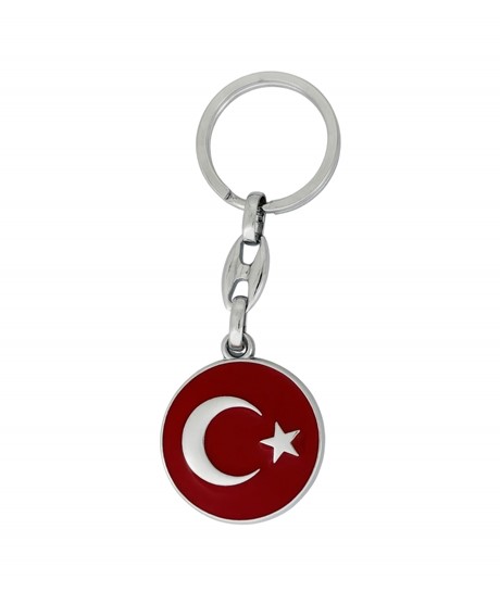 Yuvarlak Türk Bayrağı Figürlü Metal Anahtarlık