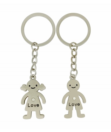 Love Yazılı Kız ve Erkek Figürlü Çift Metal Anahtarlık