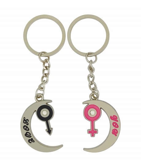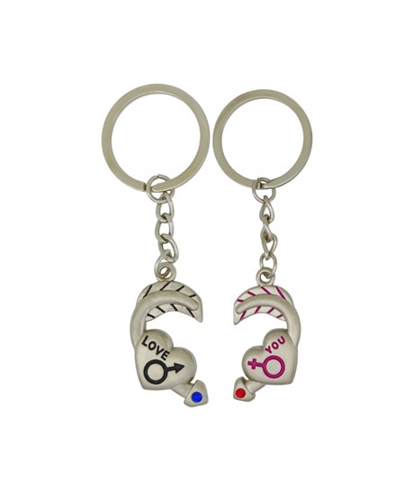 Love You Yazılı Kadın Erkek Sembollü Çift Metal Anahtarlık