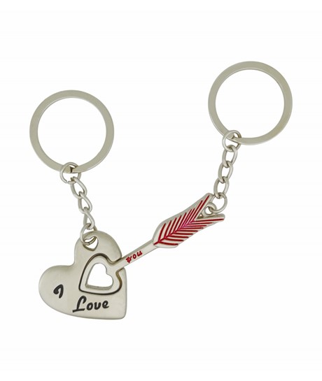 Love You Kalp ve Ok Tasarımlı Çift Metal Anahtarlık