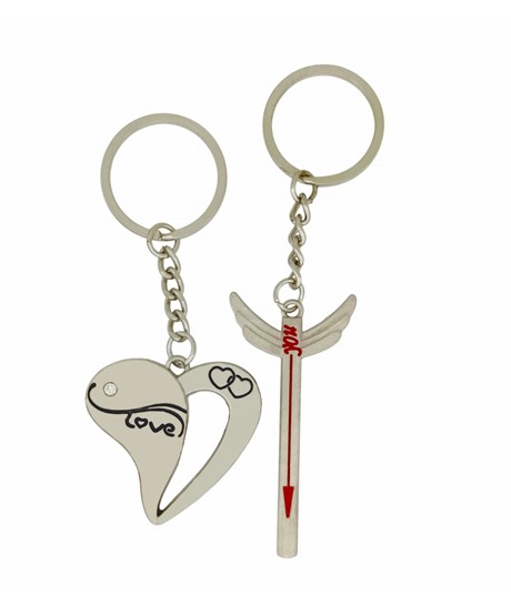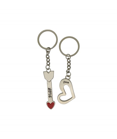 Love Yazılı Kalp ve Ok Tasarımlı Çift Metal Anahtarlık