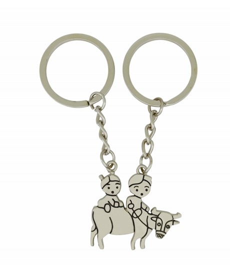 Sevimli Kız Erkek İnek Figürlü Çift Metal Anahtarlık