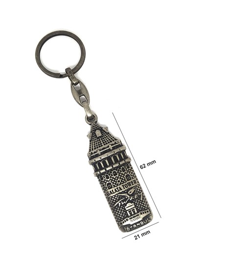 Eskitme Oksitli Metal Galata Kulesi Anahtarlık