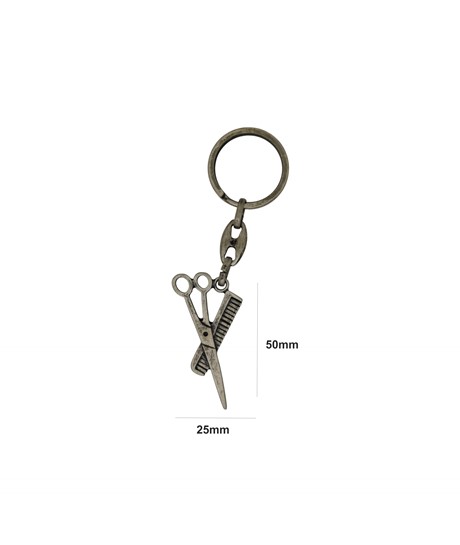 Eskitme Oksitli Metal Tarak - Makas Anahtarlık