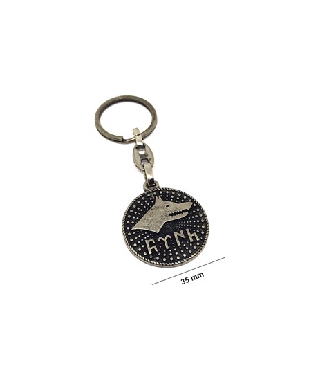 Eskitme Oksitli Metal Kurt ( Göktürkçe Türk Yazılı ) Anahtarlık