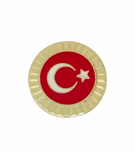 Tırtıklı Çerçeveli Gold Metal Türk Bayrağı Yaka Rozeti