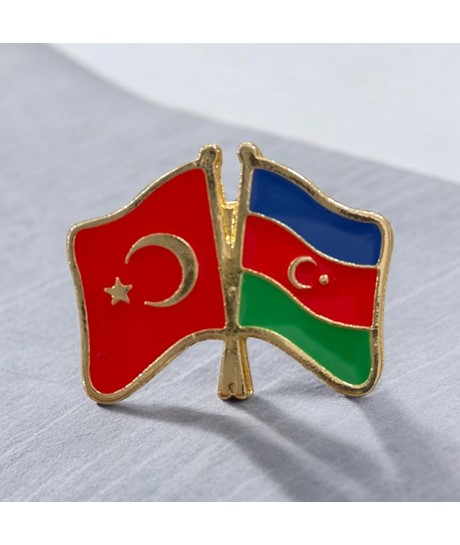 TÜRKİYE & AZERBAYCAN METAL FLAMALI YAKA ROZETİ