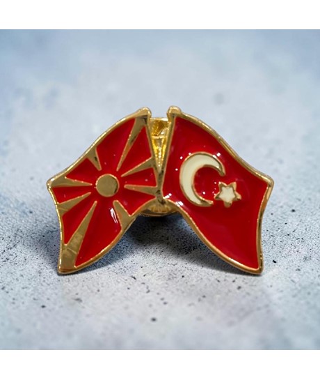 TÜRKİYE & KUZEY MAKEDONYA METAL FLAMALI YAKA ROZETİ
