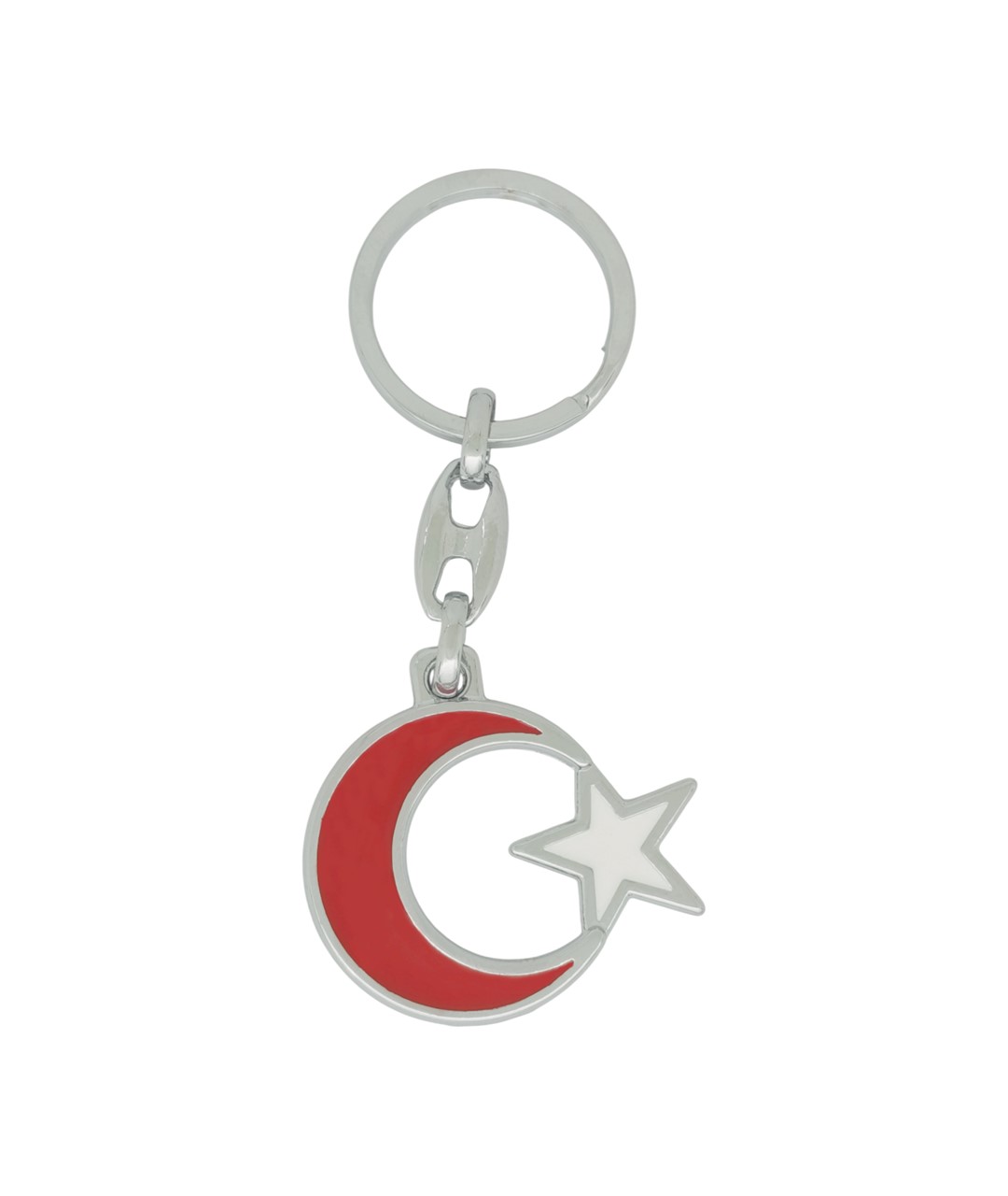 Türk bayrağının simgesi olan ay ve yıldız figürüyle tasarlanan bu anahtarlık, hem estetik hem de anlamlı bir aksesuardır. Parlak metal çerçevesi ve kırmızı detaylarıyla dikkat çeken tasarım, anahtarlarınızı düzenli tutarken aynı zamanda milli bir sembolü günlük yaşamınıza taşır. Dayanıklı yapısı sayesinde uzun süre kullanıma uygundur ve çanta, anahtar ya da aksesuar olarak rahatlıkla kullanılabilir. Kendiniz için şık bir seçim olmasının yanı sıra sevdiklerinize hediye edebileceğiniz anlamlı bir üründür.