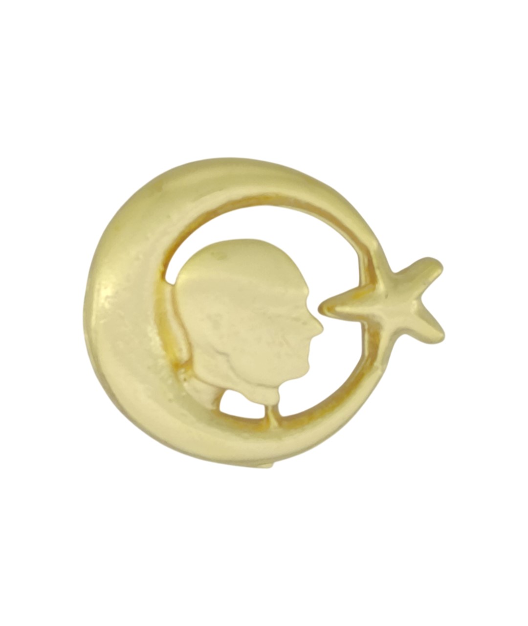 Ay yıldız formu içerisinde yer alan Atatürk silüeti ile tasarlanan bu özel rozet, milli değerleri estetik bir çizgide buluşturur. Zarif ve anlamlı tasarımı sayesinde hem şık hem de güçlü bir duruş sergiler.