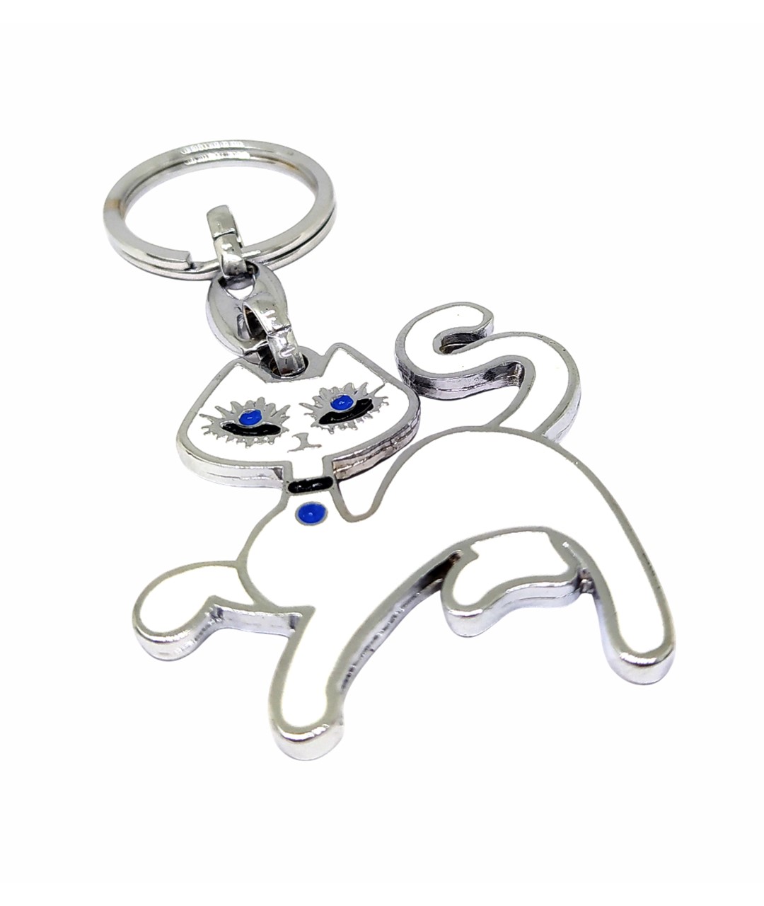 Sevimli tasarımı ve şık detaylarıyla öne çıkan sürmeli kedi metal anahtarlık, anahtarlarınıza hem zarif hem de eğlenceli bir dokunuş katar. Beyaz gövdesi, belirgin mavi göz detayları ve parlak metal çerçevesiyle dikkat çeken bu özel tasarım; çanta, cüzdan ve anahtarlarda stil sahibi bir aksesuar olarak kullanılabilir.