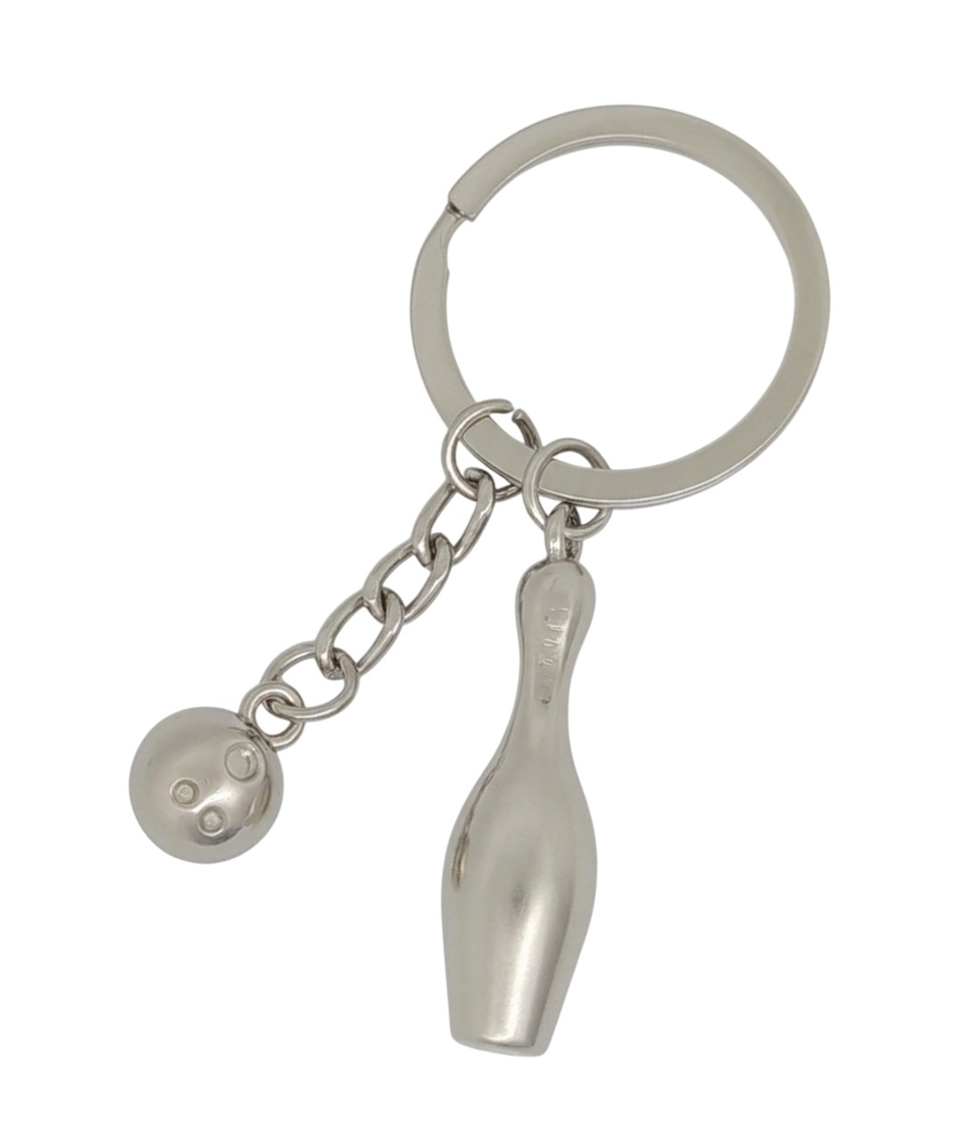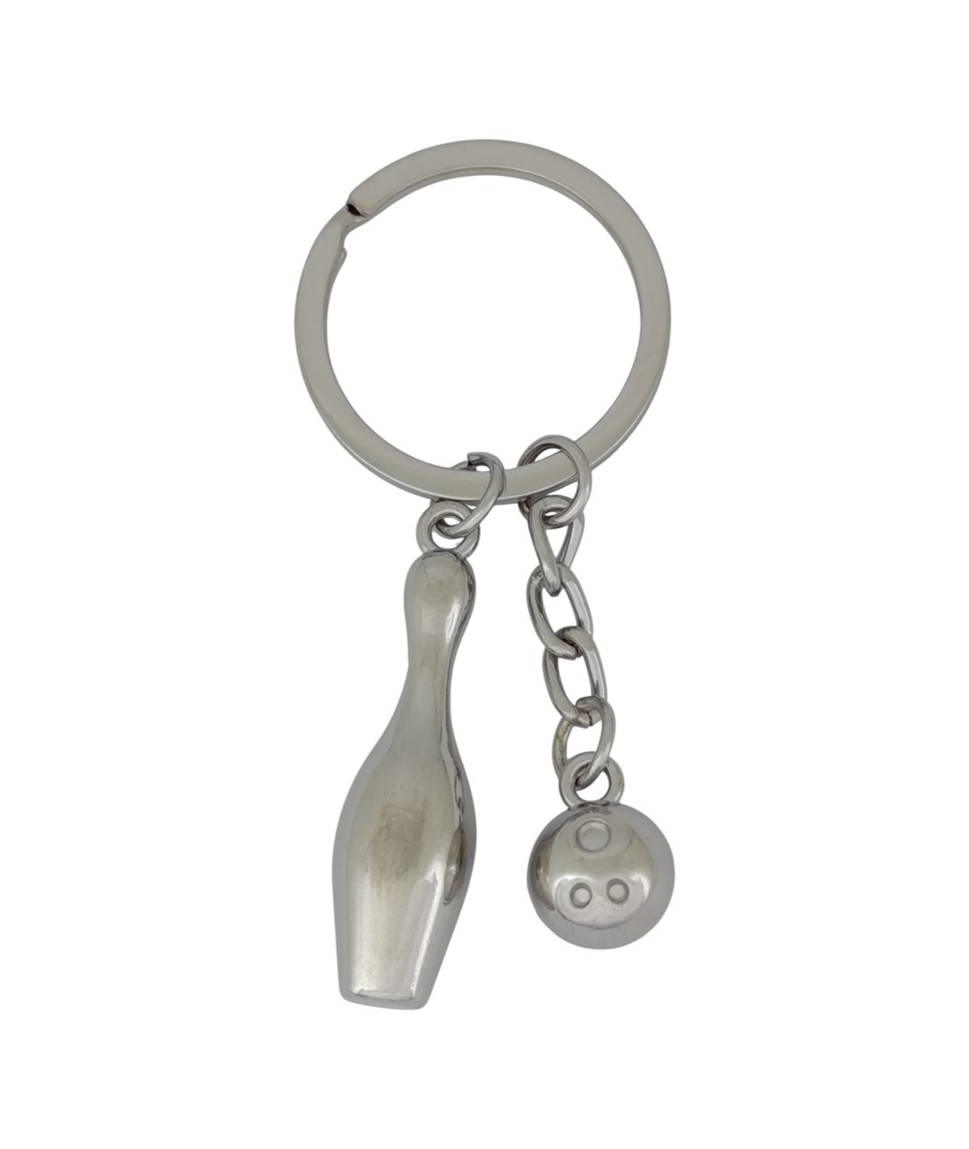 Bowling sporunu sevenler için özel olarak tasarlanan bu metal anahtarlık, bowling lobutu ve topu figürleriyle dikkat çekici bir görünüme sahiptir. Parlak metal yüzeyi ve detaylı tasarımı sayesinde hem sportif hem de şık bir aksesuar olarak öne çıkar. Dayanıklı metal malzemeden üretilen bu anahtarlık, uzun süreli kullanım için idealdir.