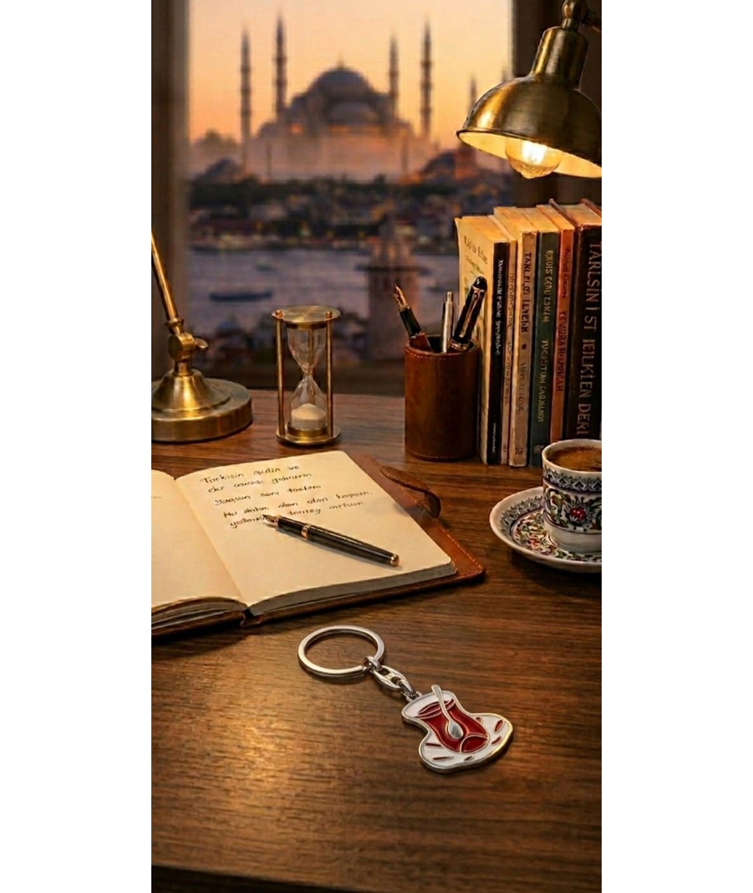 Türk kültürünün vazgeçilmez simgelerinden biri olan ince belli çay bardağı, bu şık metal anahtarlık tasarımında hayat buluyor. Kırmızı çay detayı ve kaşık figürüyle zenginleştirilen model, hem nostaljik hem de dikkat çekici bir görünüm sunar.