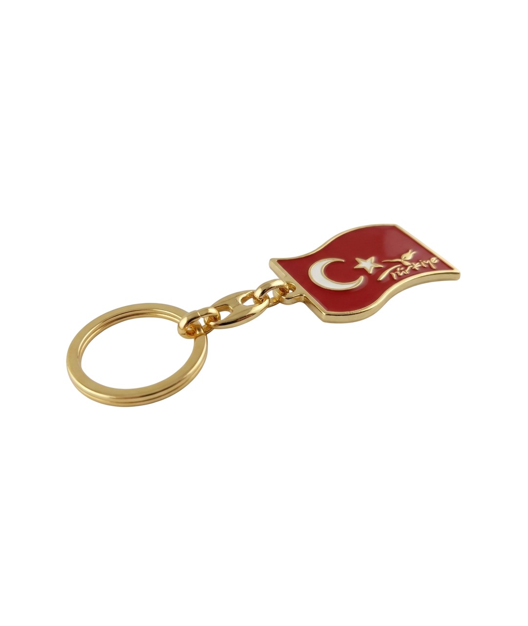 Şık ve dikkat çekici tasarımıyla öne çıkan bu dalgalı Türk bayrağı figürlü anahtarlık, estetik görünümü ve anlamlı detayı bir araya getirir. Kırmızı zemin üzerine ay-yıldız ve “Türkiye” yazısı ile milli duyguları yansıtan ürün, altın renk kaplamasıyla zarif bir görünüm sunar. Günlük kullanımda anahtarlarınızı düzenli tutarken aynı zamanda stilinizi tamamlayan şık bir aksesuar olarak öne çıkar. Dayanıklı yapısı sayesinde uzun süreli kullanım sunan bu anahtarlık, sevdiklerinize hediye edebileceğiniz anlamlı ve özel bir seçenektir.