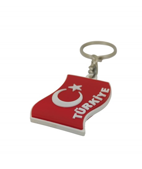 Türk bayrağı tasarımlı kauçuk anahtarlık, milli değerleri yansıtan şık ve anlamlı bir aksesuardır. Dalgalanan bayrak formunda tasarlanan kırmızı zemin üzerindeki ay ve yıldız detayı, güçlü ve dikkat çekici bir görünüm sunar. Üzerinde yer alan “Türkiye” yazısı ise tasarıma ayrı bir anlam katmaktadır.