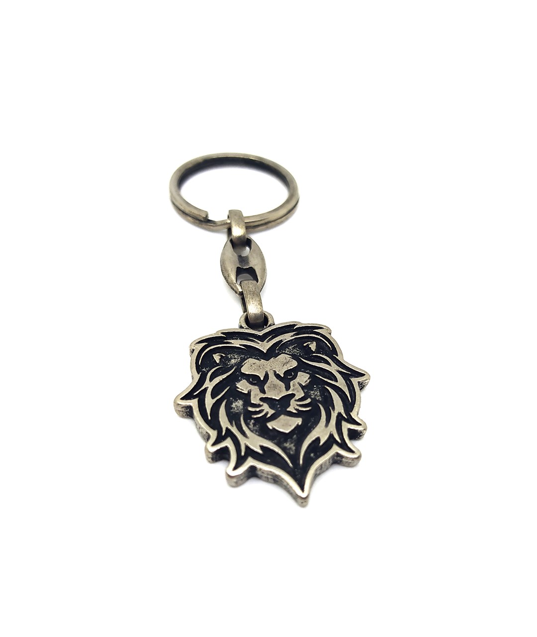 Gücün, cesaretin ve liderliğin sembolü olan aslan figürlü metal anahtarlık, iddialı ve karakterli tasarımıyla öne çıkar. Detaylı kabartma işçiliği sayesinde aslanın yüz hatları belirgin ve etkileyici bir görünüm sunar. Oksitli (eskitme) kaplama tasarıma derinlik kazandırarak güçlü bir stil oluşturur.