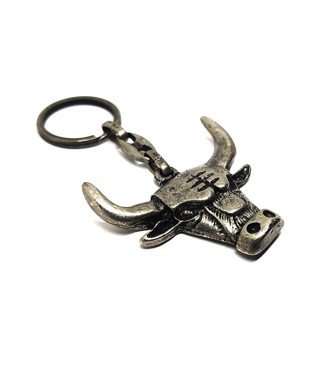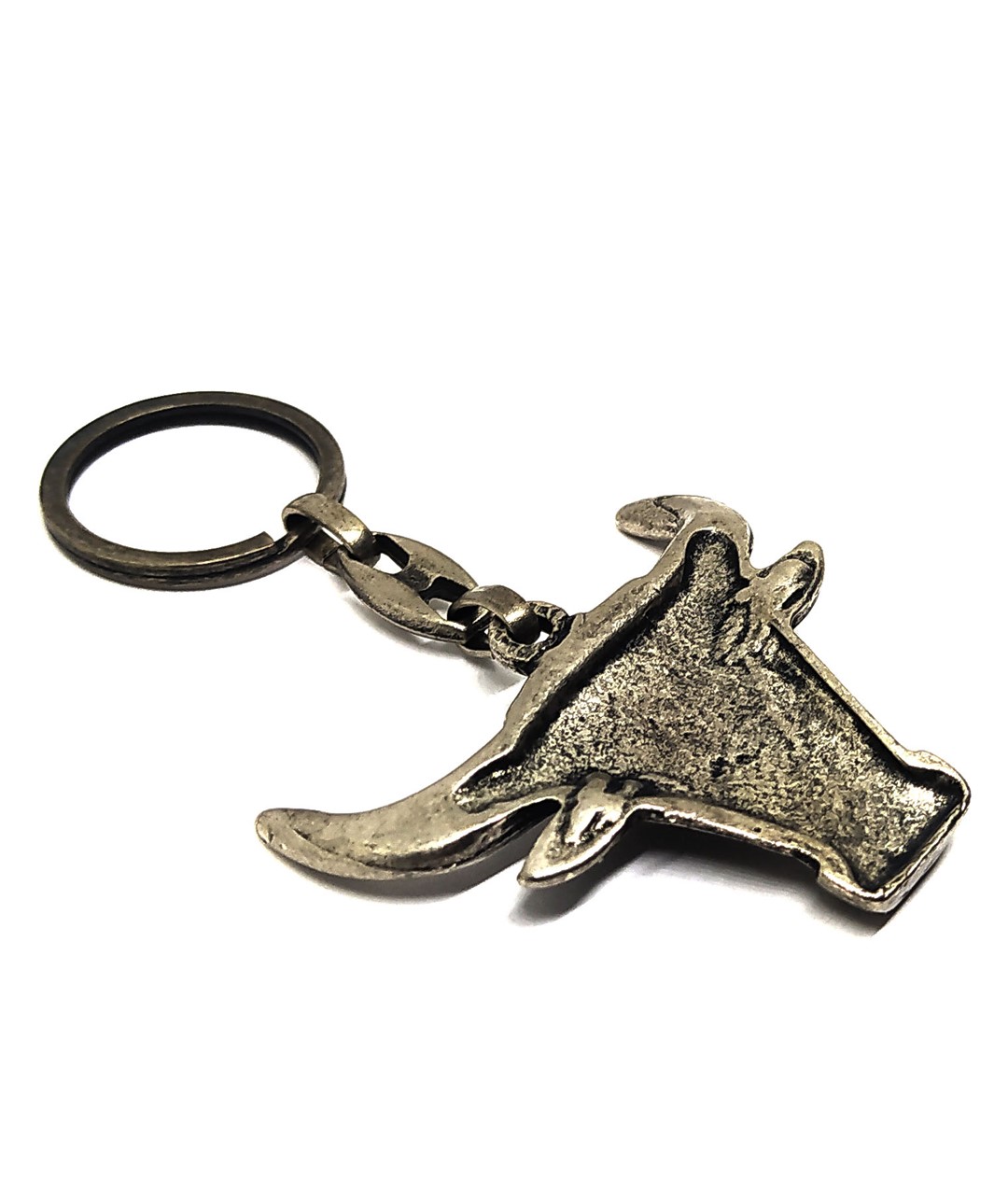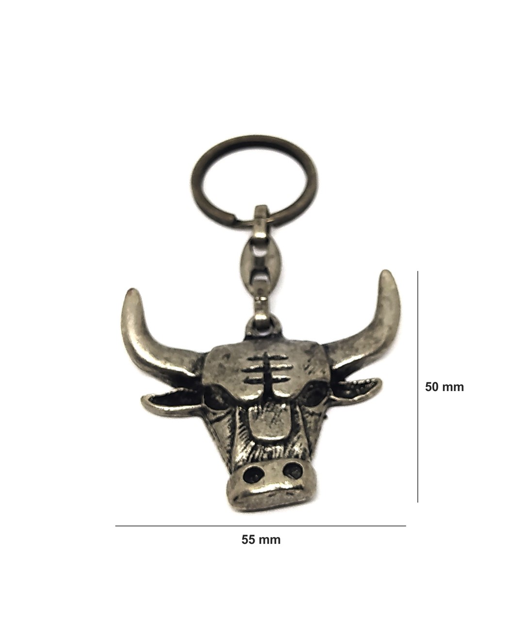 Eskitme kaplama metal alaşımdan üretilmiş olan anahtarlık, dayanıklı yapısı sayesinde uzun süreli kullanım sağlar. Boğa başı formundaki özgün tasarım; güç, azim ve liderlik sembolü olarak öne çıkar. Günlük kullanım için ideal olduğu gibi, tematik aksesuar sevenler ve koleksiyon meraklıları için de şık ve anlamlı bir hediyelik alternatiftir.