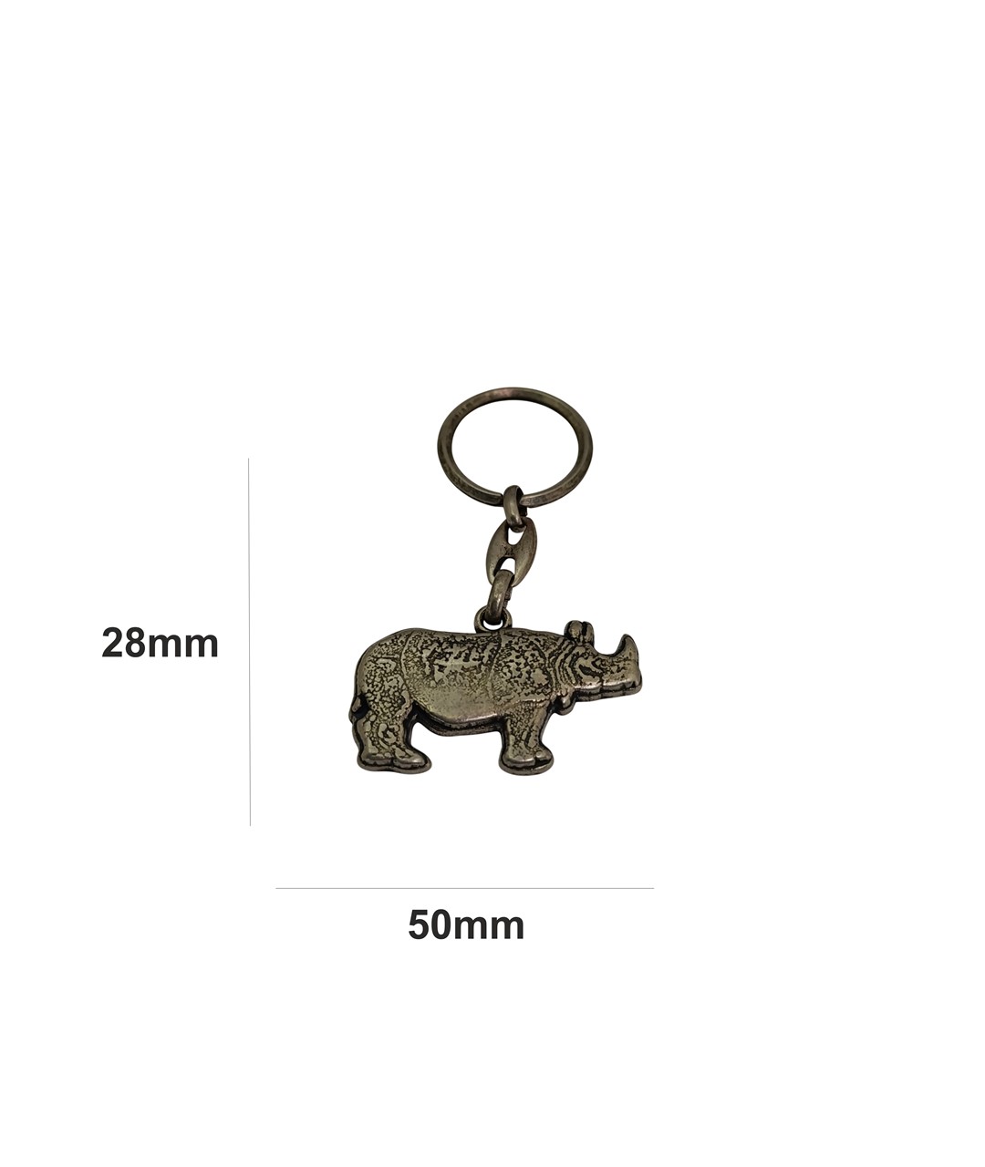 Görselde yer alan ürün, gergedan figürlü metal anahtarlıktır. Eskitme görünümlü yüzeyi ve detaylı kabartma işçiliği sayesinde gerçekçi ve dikkat çekici bir tasarım sunar. Gücü ve dayanıklılığı simgeleyen gergedan figürü, bu modeli hem anlamlı hem de karakteristik bir aksesuar haline getirir.