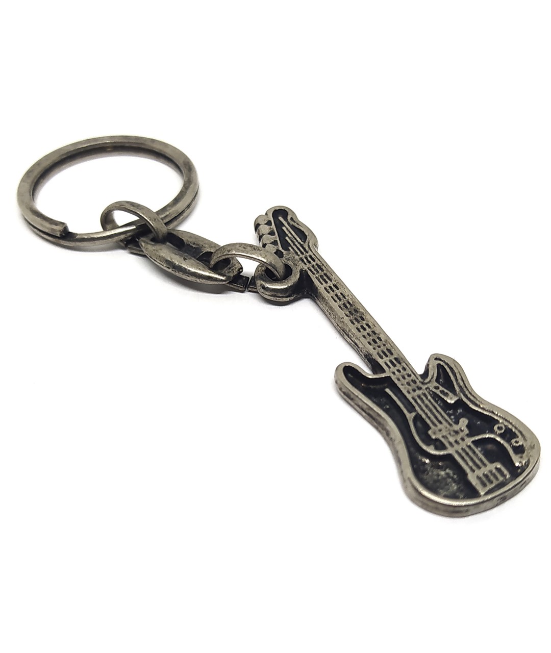 Gitar figürlü metal anahtarlık, müzik tutkunları için özel olarak tasarlanmış şık ve dikkat çekici bir aksesuardır. Eskitme (oksit) kaplama yüzeyi ve detaylı kabartma işçiligi sayesinde gitar formu net ve estetik bir görünüm sunar. Modern ve nostaljik tarzı bir arada yansıtan tasarımıyla günlük kullanım için idealdir.