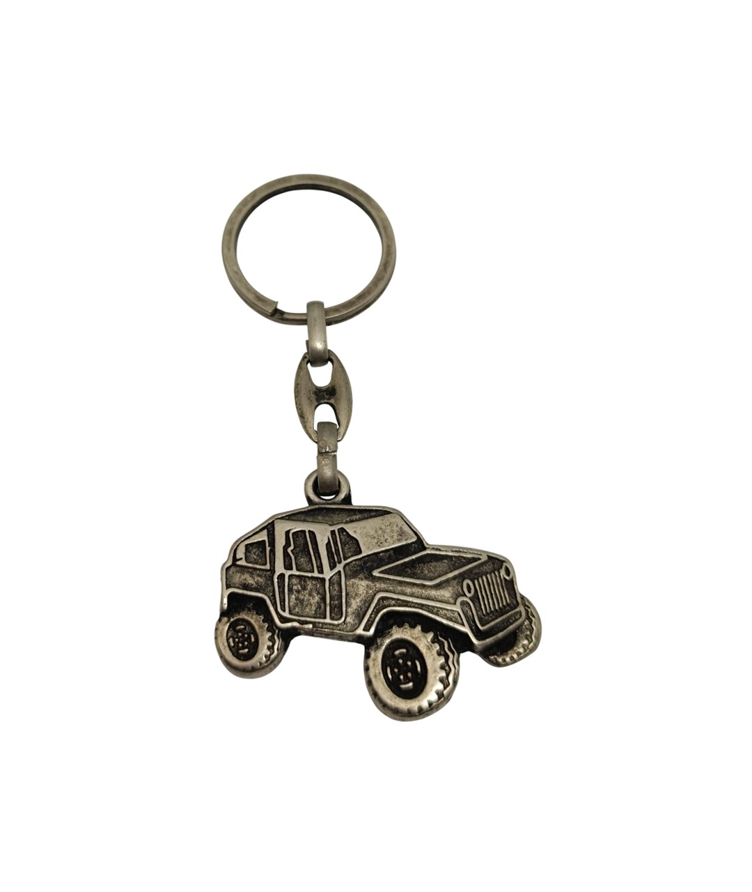 Bu ürün, off-road araç tasarımına sahip dekoratif bir metal anahtarlıktır. Güçlü ve dinamik çizgileriyle arazi ruhunu yansıtan tasarım, detaylı kabartmaları sayesinde dikkat çekici bir görünüm sunar.
