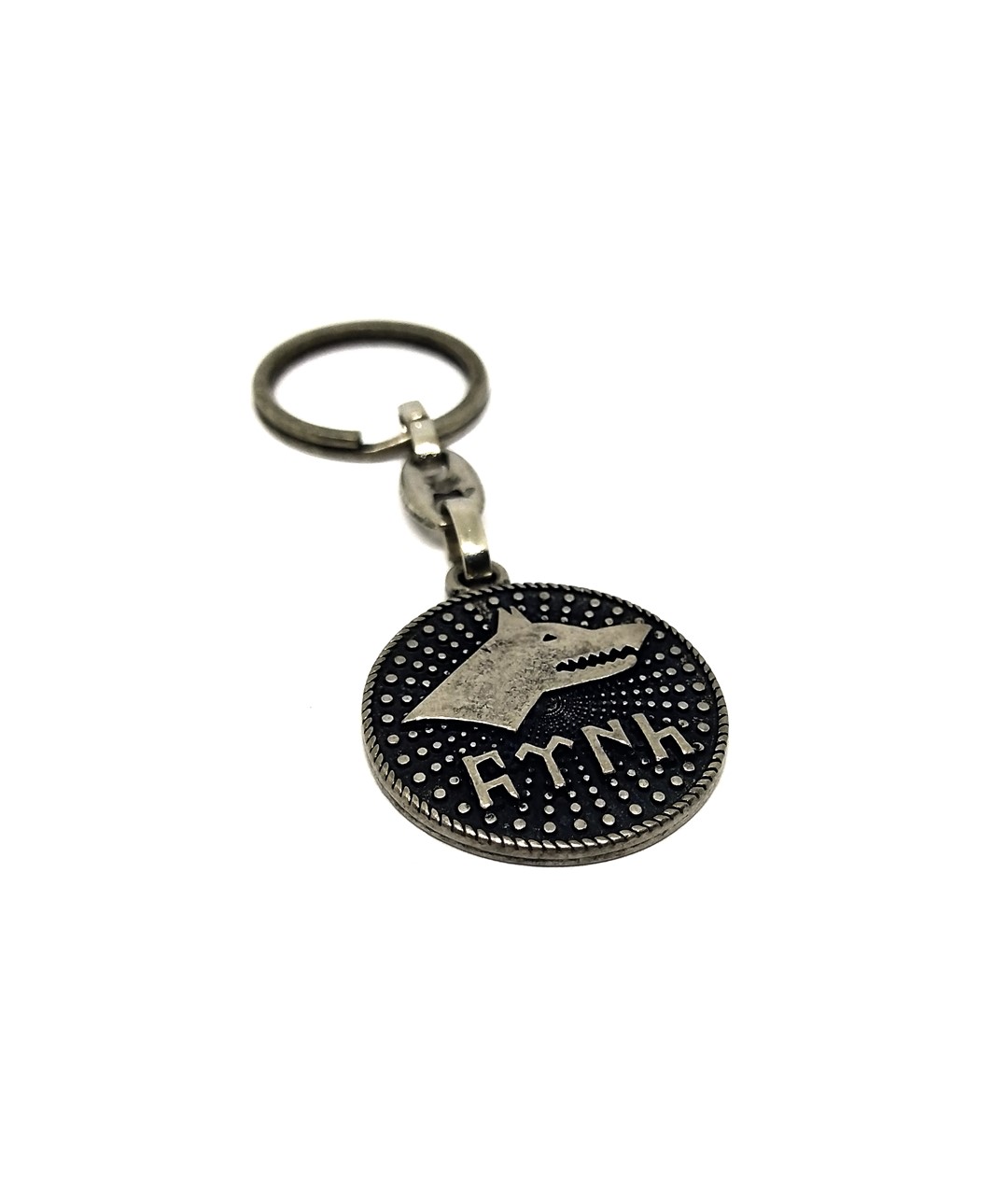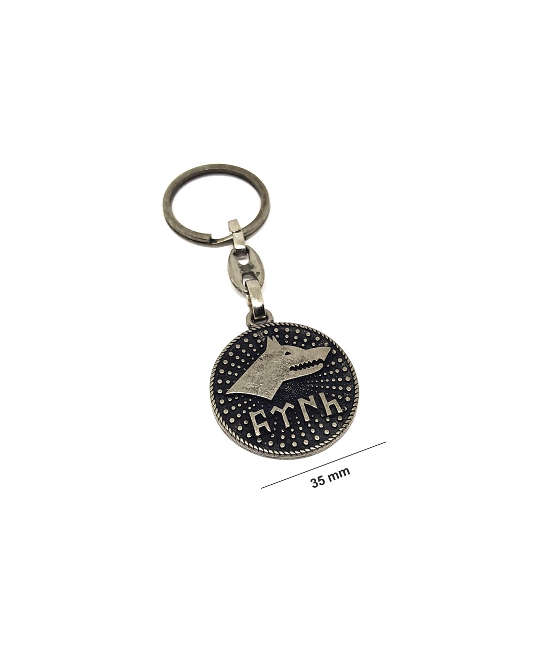 Türk mitolojisinin güçlü sembollerinden kurt figürü ve Göktürk alfabesi detayıyla tasarlanan bu özel metal anahtarlık, anlam yüklü ve dikkat çekici bir aksesuardır. Yuvarlak formu ve yüzeyindeki nokta desenleri tasarıma estetik bir derinlik katarken, oksit kaplama görünümü ürüne vintage ve karakterli bir hava kazandırır.