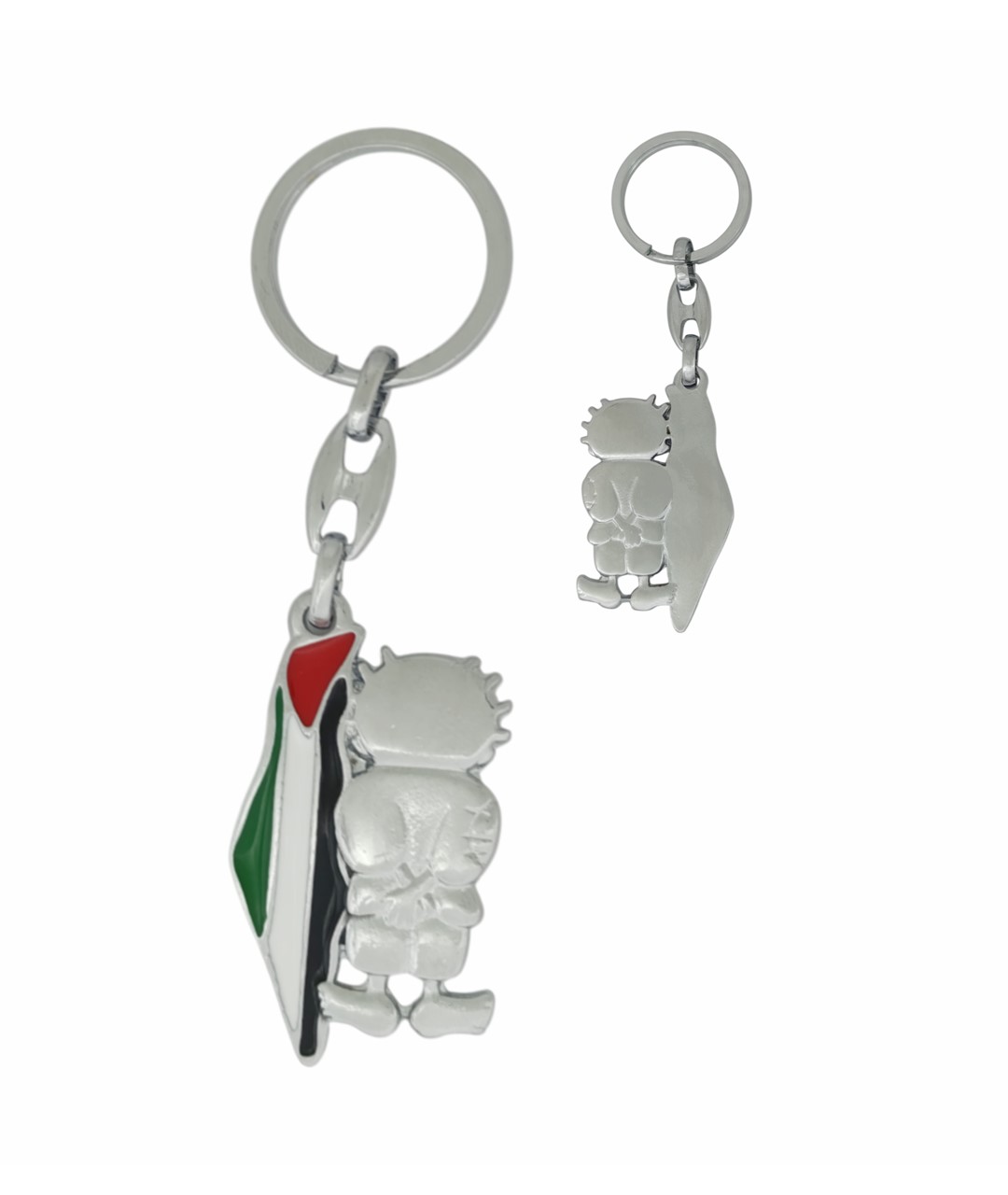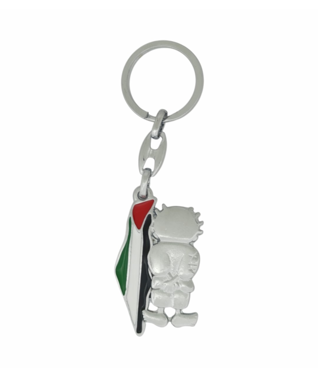 Hanzala figürlü Filistin bayraklı metal anahtarlık, anlam yüklü tasarımıyla dikkat çeken özel bir aksesuardır. Filistin bayrağının yeşil, beyaz, siyah ve kırmızı renkleriyle tasarlanan detay bölümü, arka kısmındaki Hanzala figürü ile güçlü bir mesaj taşır. Dayanıklı metal malzemeden üretilmiş olup uzun ömürlü ve sağlam bir kullanım sunar.