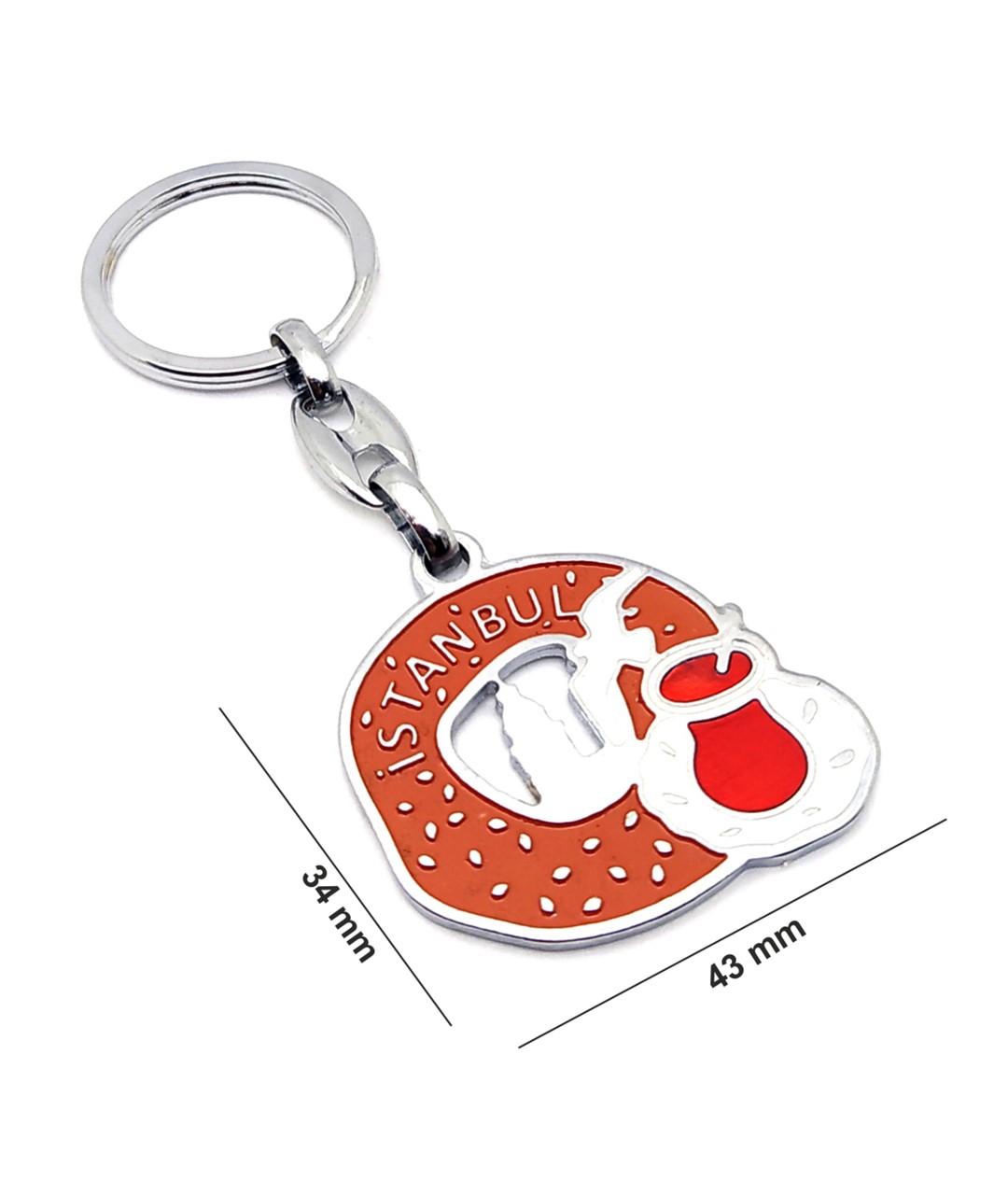 İstanbul’un vazgeçilmez lezzetlerinden ilham alınarak tasarlanan bu simit ve çay temalı anahtarlık, şehrin günlük yaşam kültürünü eğlenceli ve şık bir şekilde yansıtır. Geleneksel simit detayı ve ince belli çay bardağı figürü, İstanbul’un sokak ruhunu ve sıcak sohbetlerini sembolize eder. Canlı renkleri ve dikkat çekici tasarımıyla hem nostaljik hem de modern bir görünüm sunar.