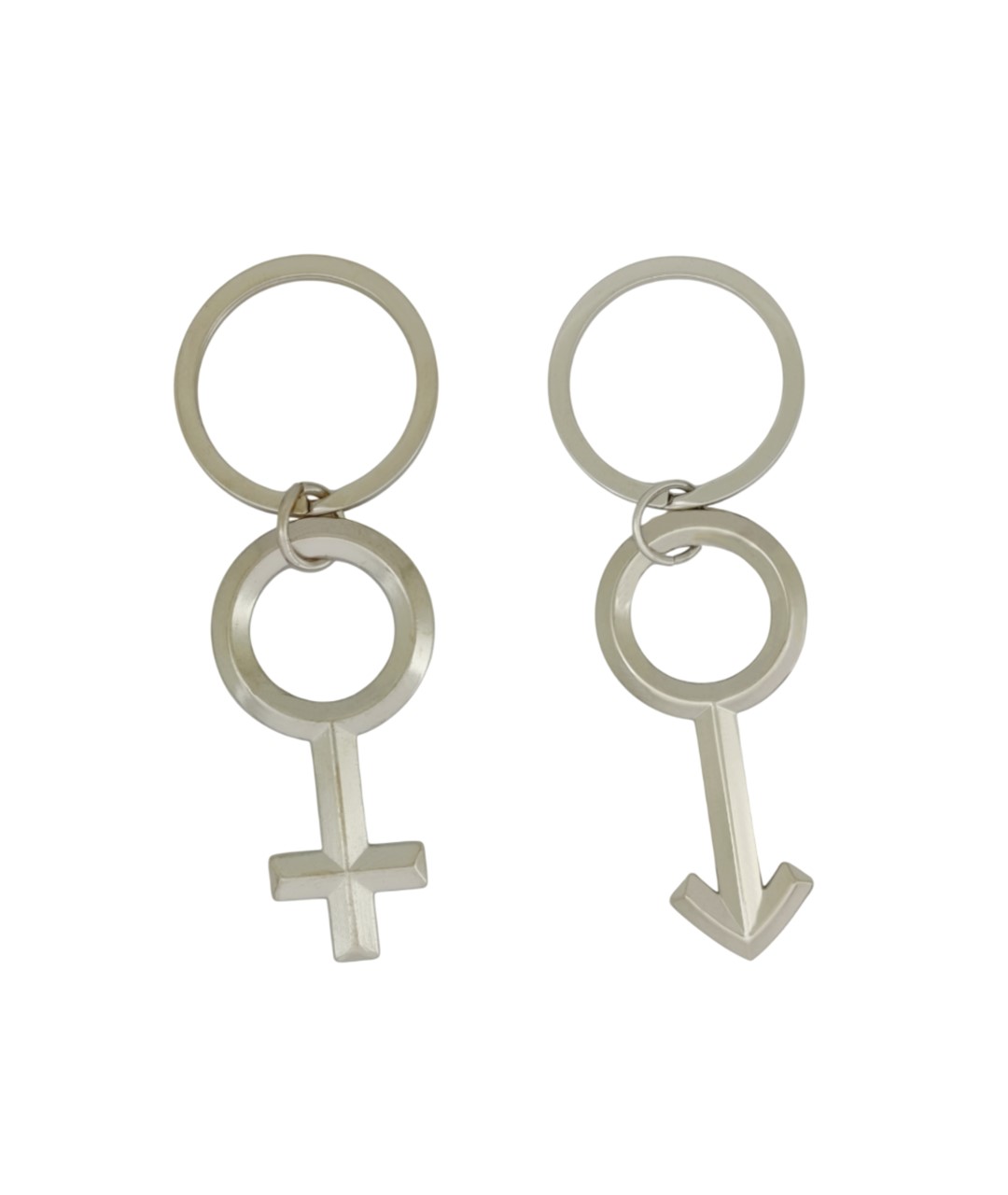 Kadın ve erkek sembollerinden oluşan bu özel çift anahtarlık, birlikteliği ve uyumu simgeleyen şık bir aksesuardır. Minimal ve modern tasarımı sayesinde hem günlük kullanım için hem de anlamlı bir hediye olarak tercih edilebilir. Parlak metal görünümü, anahtarlığınıza zarif bir dokunuş katarken dayanıklı yapısı uzun süre kullanım sağlar.
