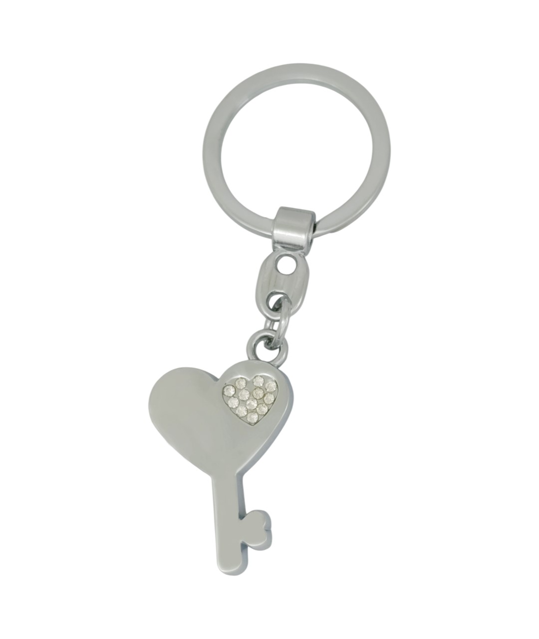 Kalp formunda tasarlanan bu şık anahtar anahtarlık, zarif görünümü ve parlak taş detaylarıyla dikkat çeker. Anahtar şeklindeki tasarımın üst kısmında yer alan kalp figürü ve içerisindeki ışıltılı taşlar, ürüne hem romantik hem de estetik bir dokunuş katar. Metal malzemeden üretilen bu anahtarlık, sağlam yapısı sayesinde uzun süreli kullanım sunar.