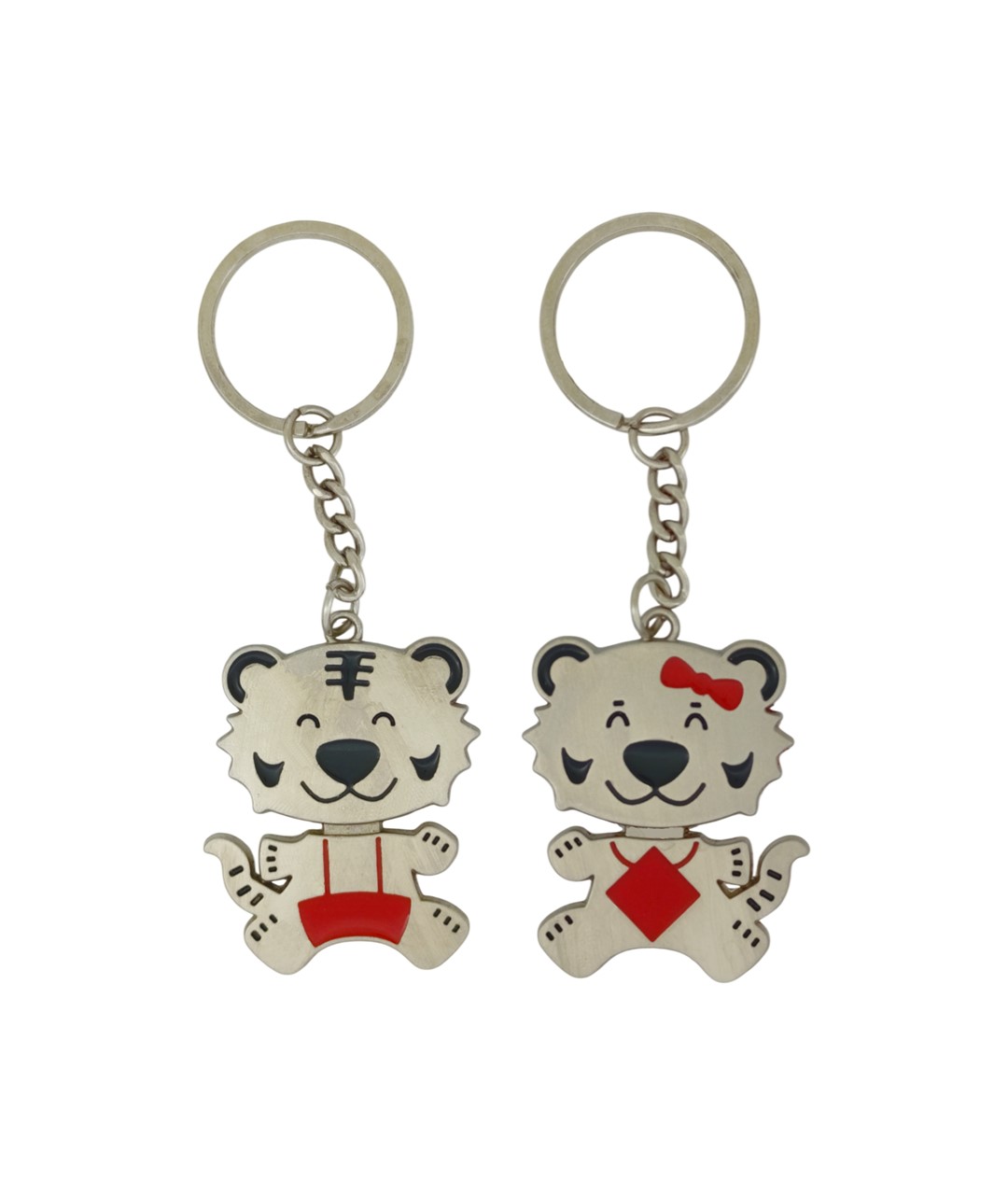 Sevimli tasarımıyla dikkat çeken kız ve erkek ayıcık figürlü çift anahtarlık, çiftler için özel olarak tasarlanmış anlamlı ve şık bir aksesuardır. Biri fiyonklu kız ayıcık, diğeri ise erkek ayıcık figürü olan bu anahtarlık seti, sevgi ve birlikteliği simgeleyen eğlenceli bir tasarıma sahiptir. Üzerindeki kırmızı detaylar ürüne canlı ve dikkat çekici bir görünüm kazandırır.