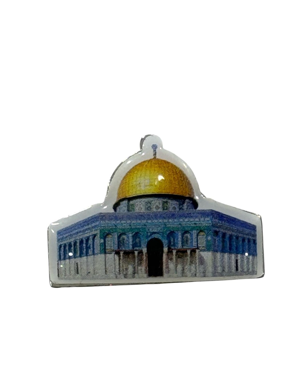 Mescid-i Aksa tasarımlı bu özel rozet, detaylı baskısı ve parlak yüzeyiyle dikkat çeken anlamlı bir aksesuardır. Altın kubbe ve mavi tonlardaki mimari detaylar özenle işlenmiş olup, ürün estetik ve şık bir görünüm sunar.