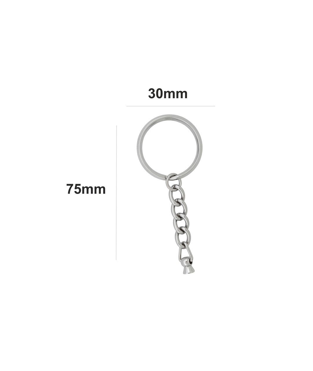 Zincirli ve uç kısmında bulunan aparat detayı sayesinde farklı anahtarlık süsleri, etiketler veya aksesuarlar kolayca eklenebilir. Dayanıklı metal malzemesi paslanmaya karşı dirençli olup uzun süreli kullanım sağlar. Hem bireysel kullanım hem de promosyon ve el yapımı anahtarlık tasarımları için mükemmel bir tercihtir.