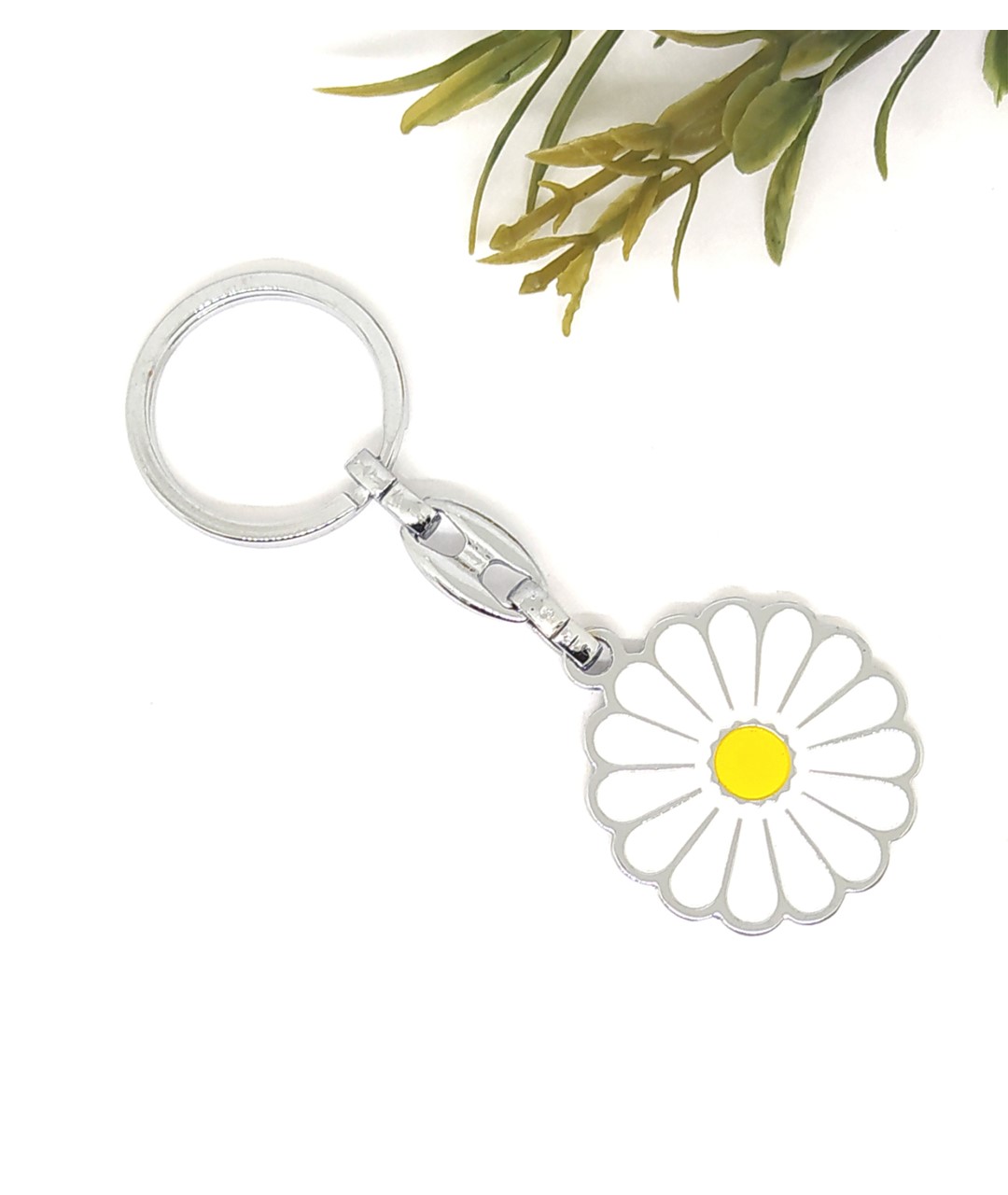 Doğal ve çiçek temalı aksesuarları sevenler için ideal bir hediyelik seçenek olan bu papatya anahtarlık, günlük kullanım ve koleksiyon amaçlı tercih edilebilecek zarif ve kullanışlı bir modeldir.