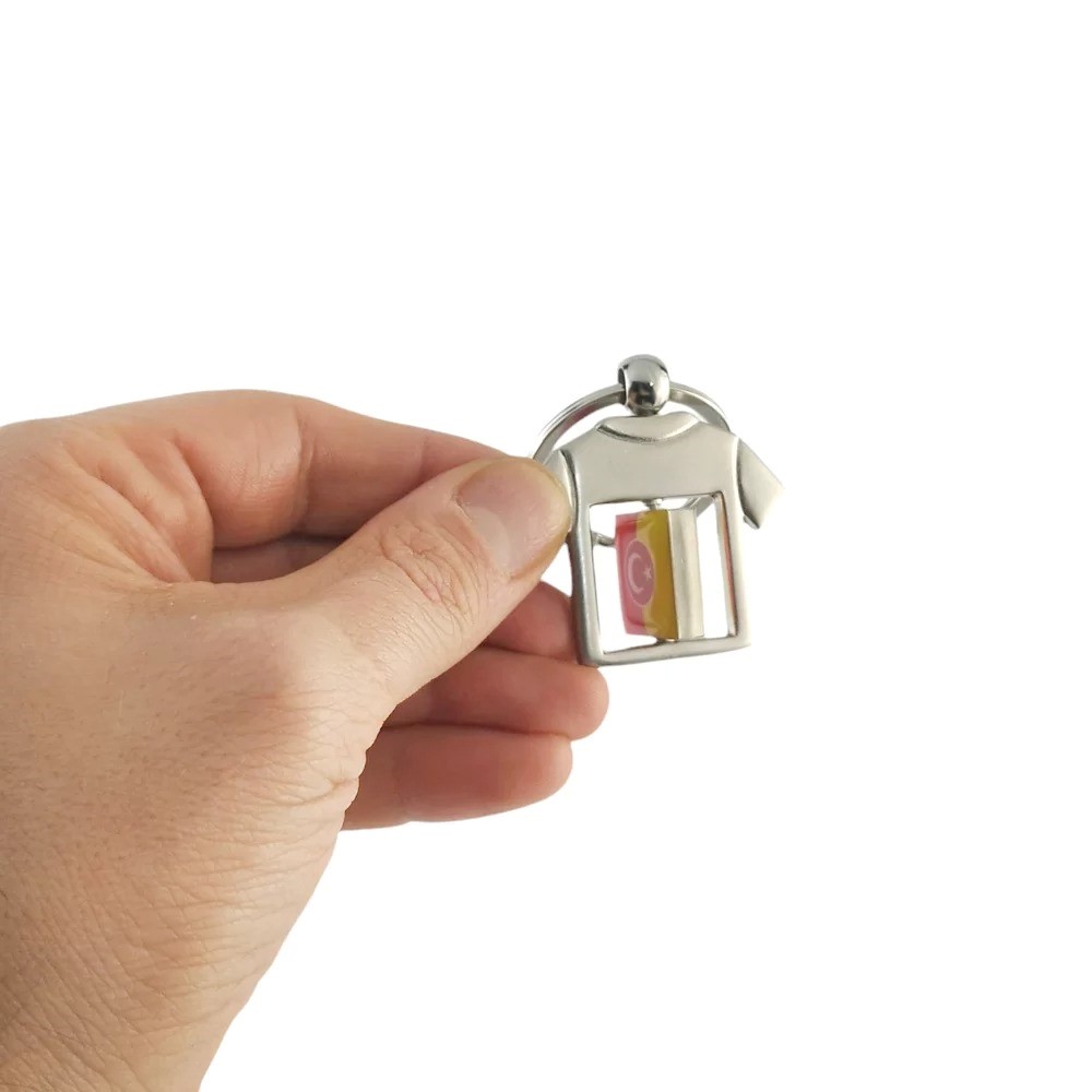 Tişört formunda tasarlanmış bu metal anahtarlık, sade ve şık görünümüyle dikkat çeker. Ön yüzeyinde yer alan ay yıldız detaylı Türkiye bayrağı tasarımı, ürüne anlam ve estetik bir değer katar. Parlak metal gövdesi dayanıklı yapısıyla uzun ömürlü kullanım sunarken, sağlam anahtarlık halkası sayesinde anahtarlarınızı güvenle taşımanızı sağlar.