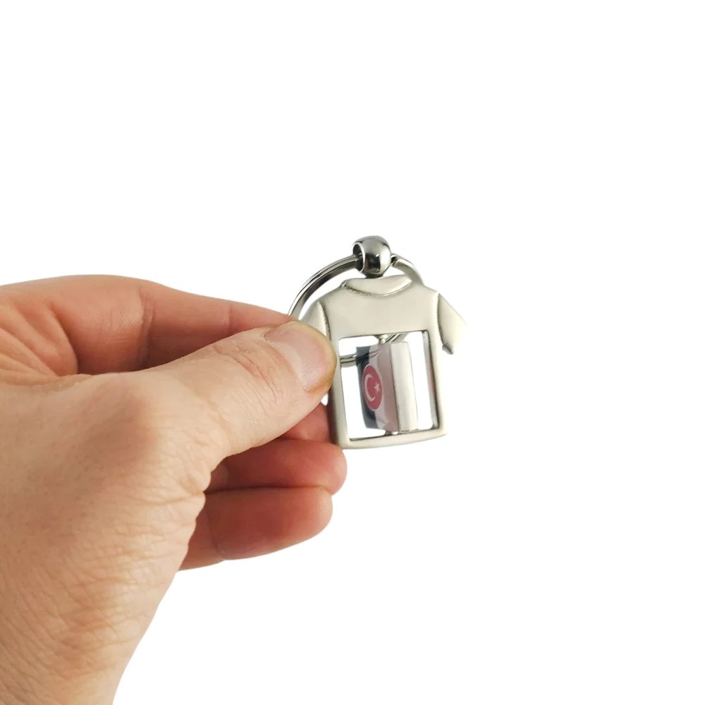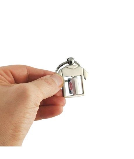 Tişört formunda tasarlanmış bu metal anahtarlık, sade ve şık görünümüyle dikkat çeker. Ön yüzeyinde yer alan ay yıldız detaylı Türkiye bayrağı tasarımı, ürüne anlam ve estetik bir değer katar. Parlak metal gövdesi dayanıklı yapısıyla uzun ömürlü kullanım sunarken, sağlam anahtarlık halkası sayesinde anahtarlarınızı güvenle taşımanızı sağlar.