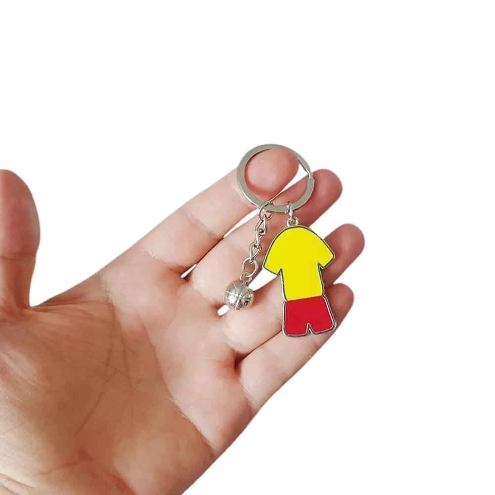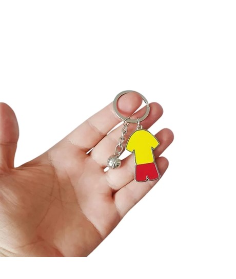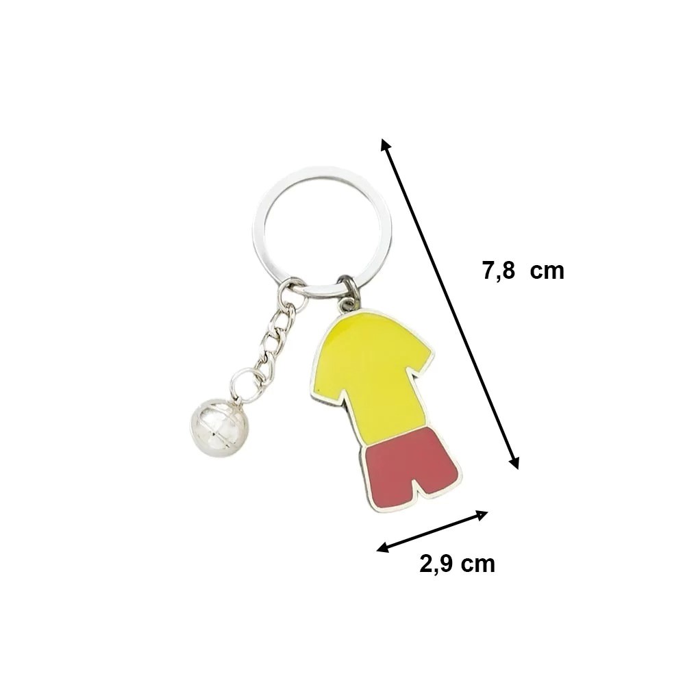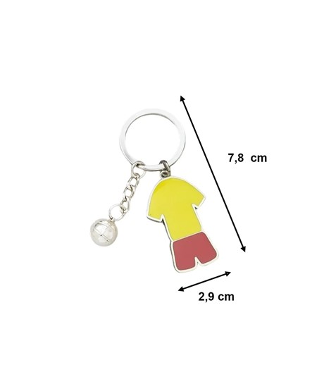Sarı kırmızı forma tasarımına sahip bu metal anahtarlık, enerjik renkleri ve şık detaylarıyla dikkat çeker. Minimal forma figürü ve yanında yer alan metal top detayı ürüne hareketli ve sportif bir görünüm kazandırır. Parlak kaplama yüzeyi sayesinde estetik bir duruş sergilerken, sağlam anahtarlık halkası uzun ömürlü kullanım sunar.