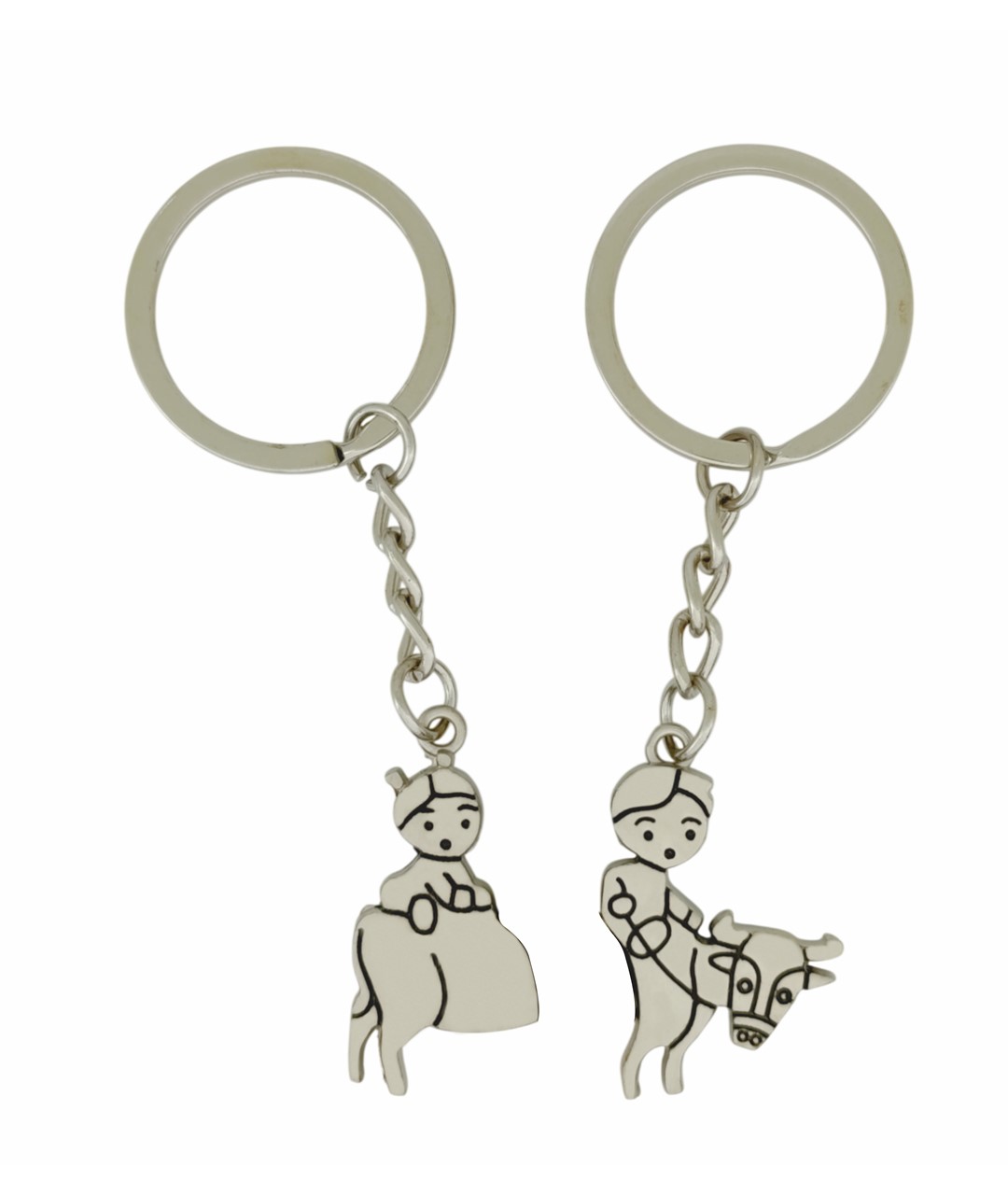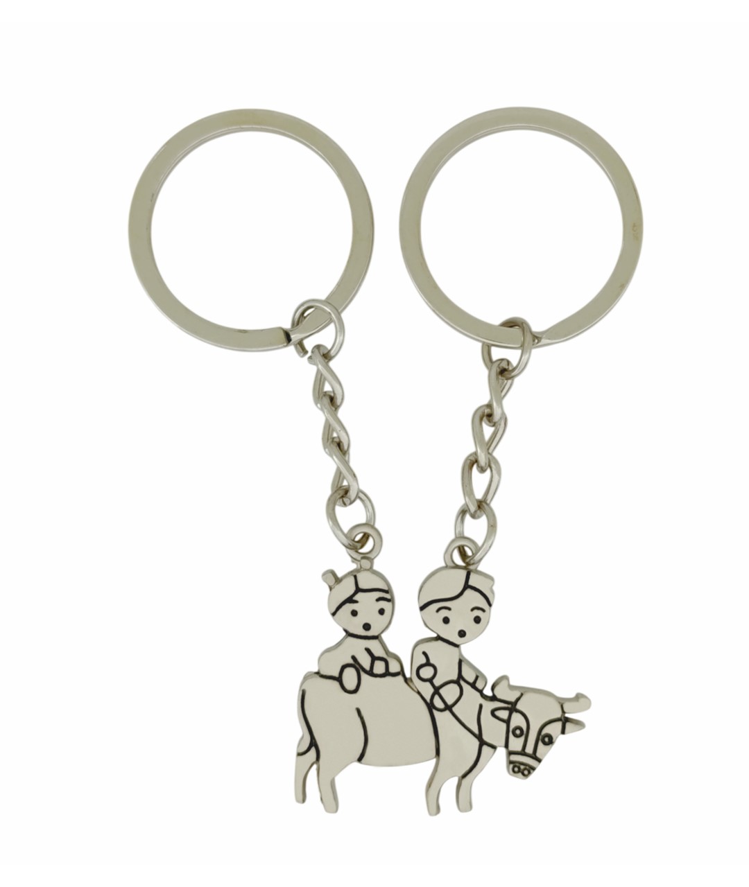 Sevimli ve eğlenceli tasarımıyla dikkat çeken bu çift anahtarlık, inek üzerinde oturan kız ve erkek figürlerinden oluşan özel bir tasarıma sahiptir. Birbirini tamamlayan bu figürler, dostluğu, sevgiyi ve birlikte geçirilen keyifli anları simgeler. Günlük hayata neşeli bir dokunuş katmak isteyenler için farklı ve dikkat çekici bir aksesuardır.