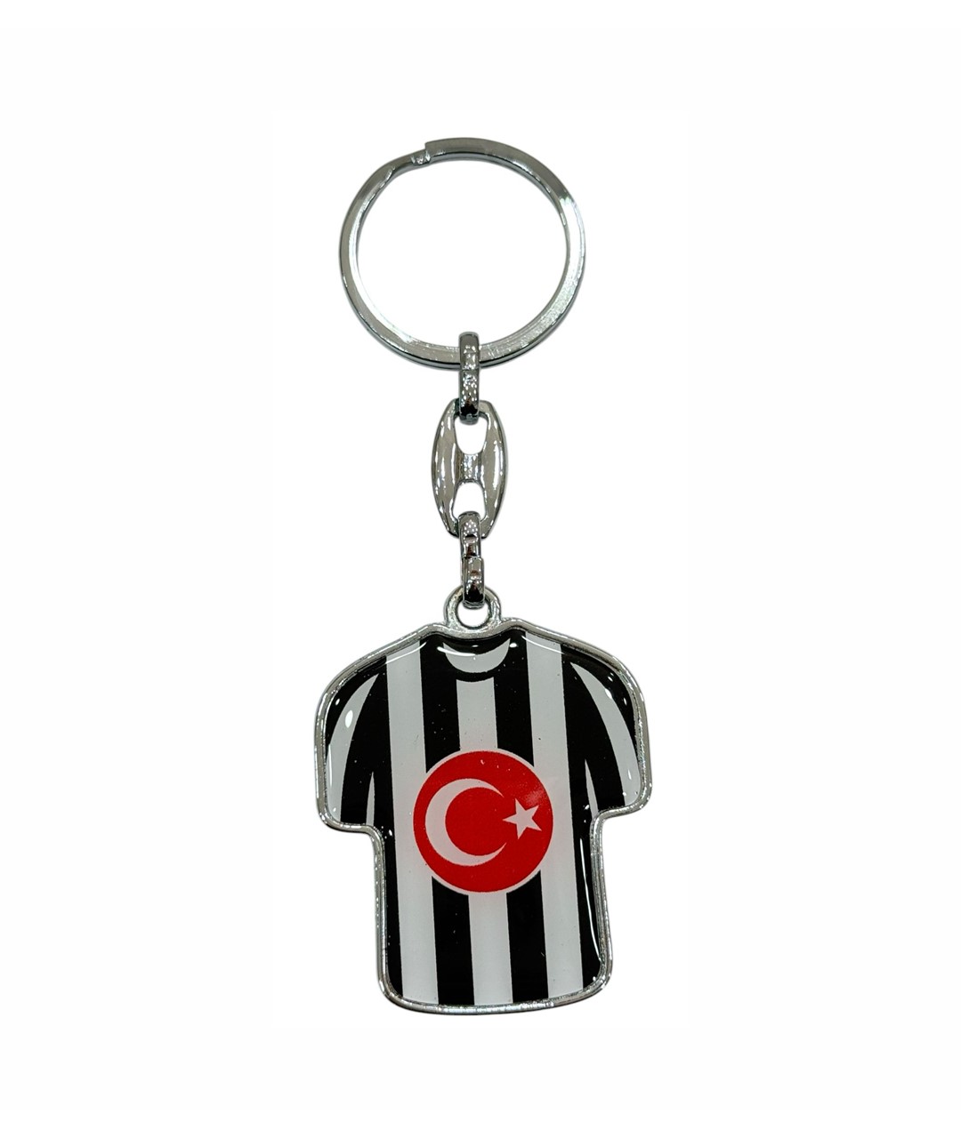 Siyah beyaz çizgili forma tasarımıyla dikkat çeken bu metal anahtarlık, şıklığı ve anlamı bir arada sunar. Ön yüzeyinde yer alan ay yıldız detayı ürüne güçlü bir karakter kazandırırken, parlak kaplama yüzeyi sayesinde estetik bir görünüm sağlar.
