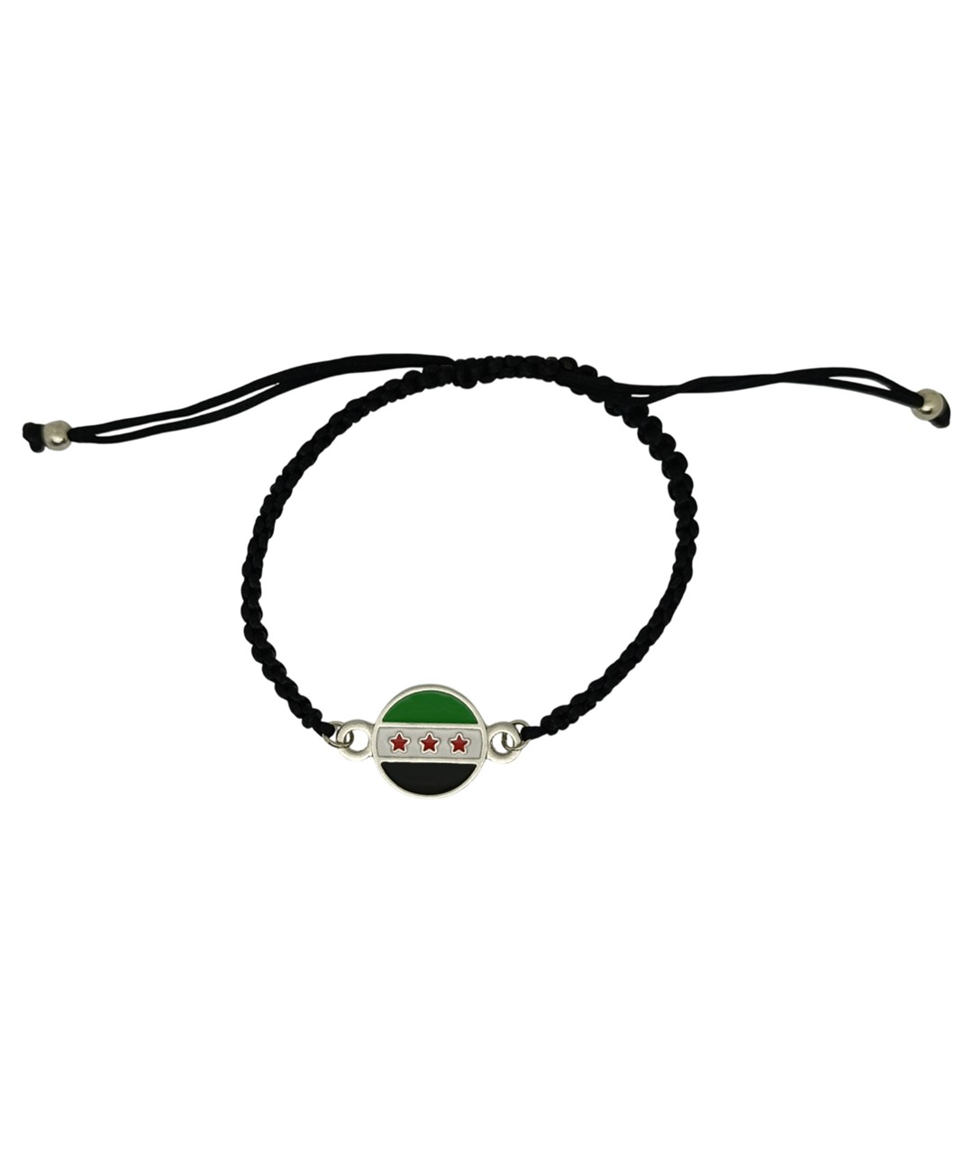 Suriye temalı bu özel bileklik, anlamlı tasarımı ve sade şıklığı ile dikkat çeken bir aksesuardır. Ortasında yer alan Suriye bayrağı detayı; dayanışmayı, kültürel bağı ve aidiyet duygusunu simgeler. Siyah örgü ip yapısı sayesinde hem dayanıklı hem de modern bir görünüm sunar. Günlük kullanım için tasarlanan bu bileklik, ayarlanabilir yapısı sayesinde her bilek ölçüsüne kolayca uyum sağlar.