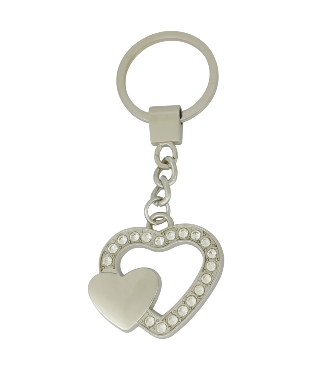 Şık ve romantik tasarımıyla öne çıkan kalp figürlü taşlı metal anahtarlık, zarif detaylarıyla dikkat çeken özel bir aksesuardır. Büyük kalp formunun etrafını süsleyen parlak taşlar ve ön kısmında yer alan küçük kalp figürü anahtarlığa estetik ve göz alıcı bir görünüm kazandırır. Dayanıklı metal yapısı sayesinde uzun süreli kullanım sunar. Anahtarlarınızda veya çantanızda şık bir aksesuar olarak kullanabileceğiniz bu anahtarlık, aynı zamanda sevdiklerinize verebileceğiniz anlamlı ve zarif bir hediye seçeneğidir.