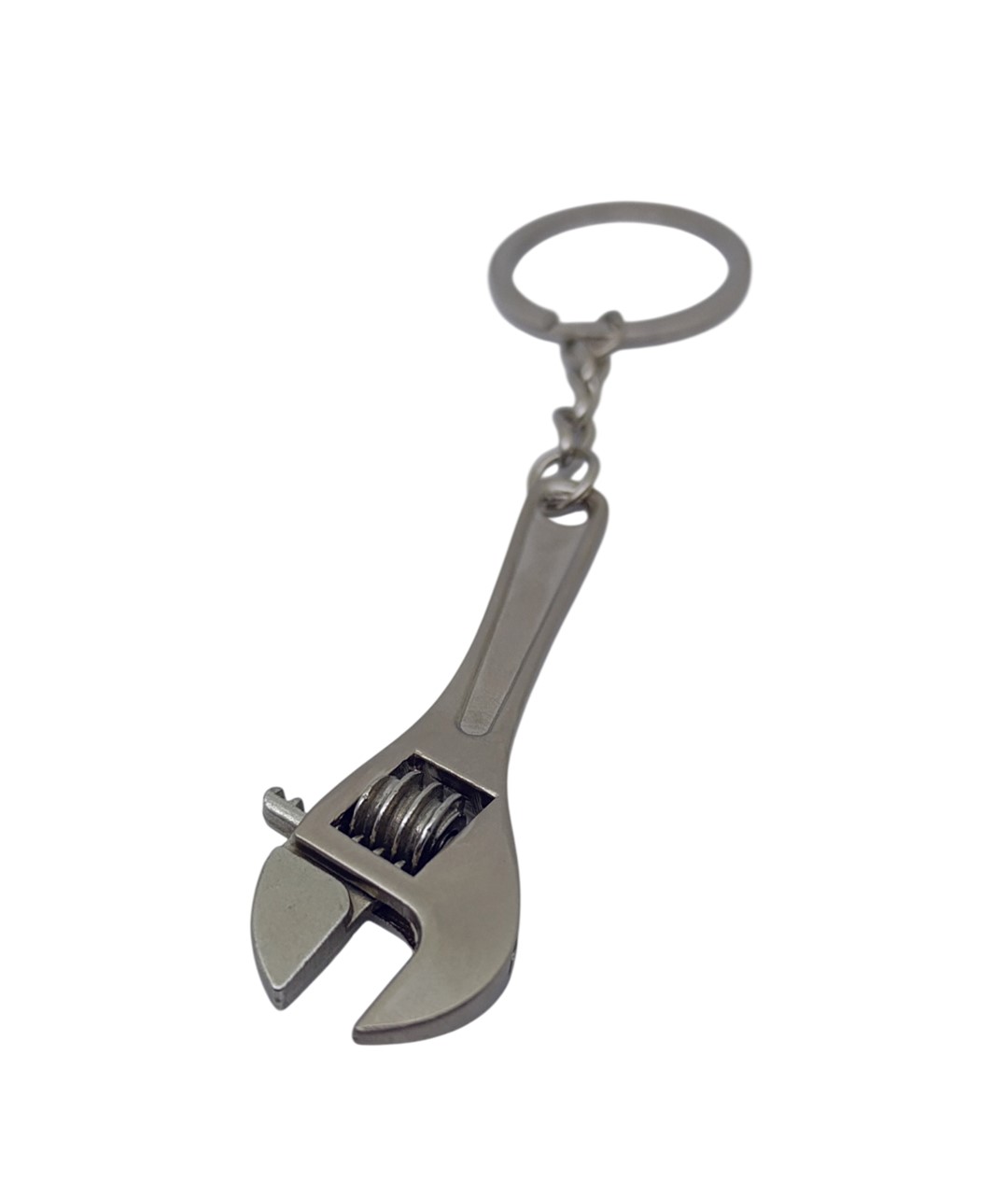 Görselde yer alan ürün, İngiliz anahtarı tasarımlı metal anahtarlıktır. Tamir ve teknik ekipman temalı bu özel tasarım, ayarlı anahtar formunda üretilmiş olup detaylı dişli mekanizma görünümüyle dikkat çeker.