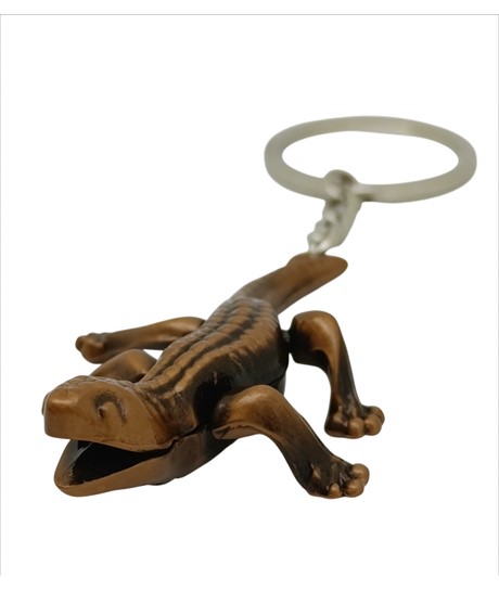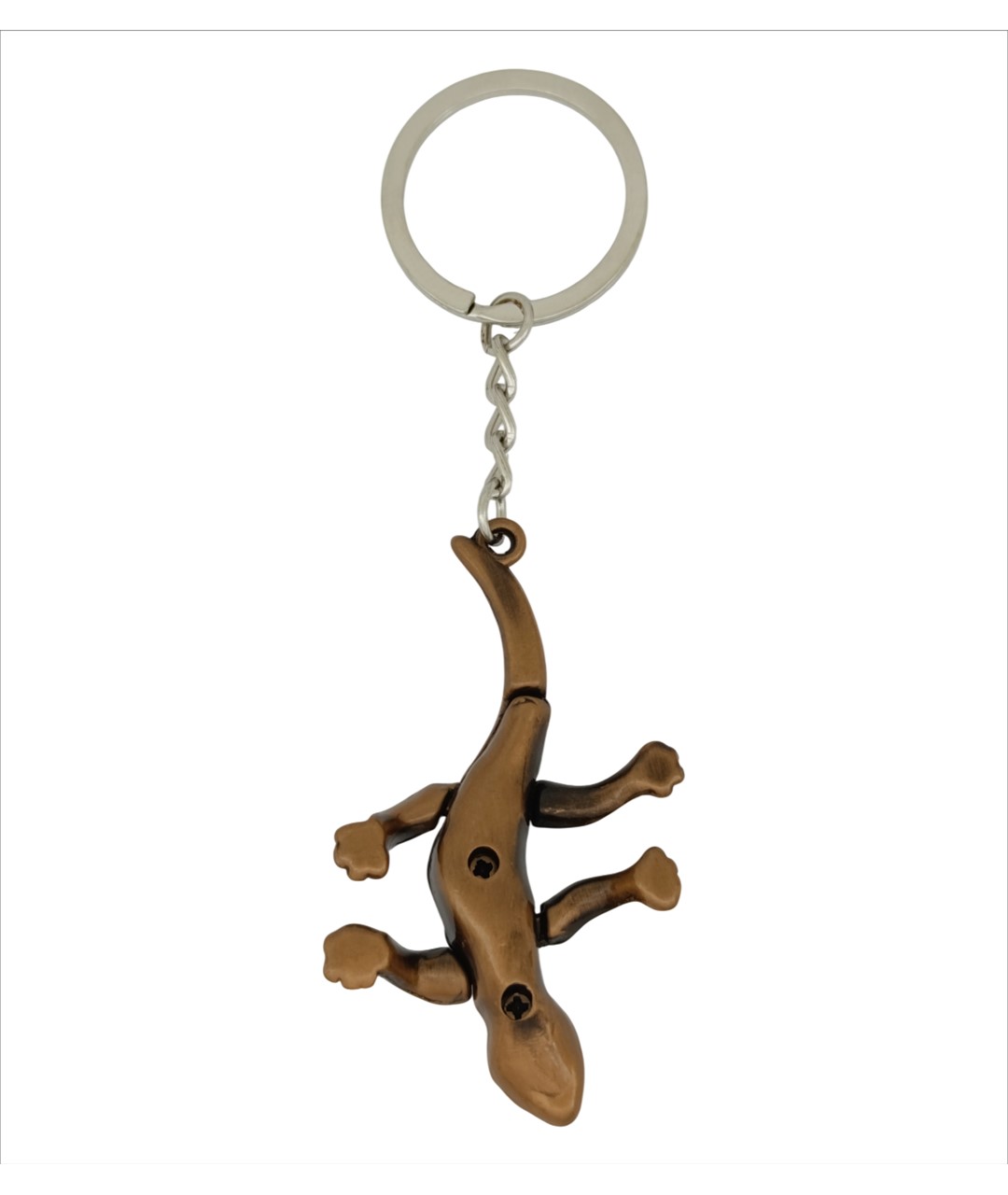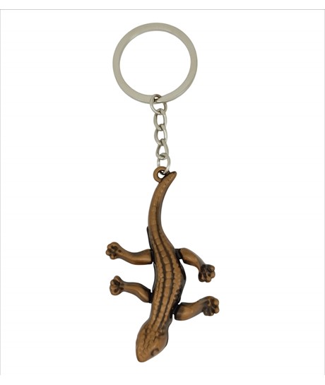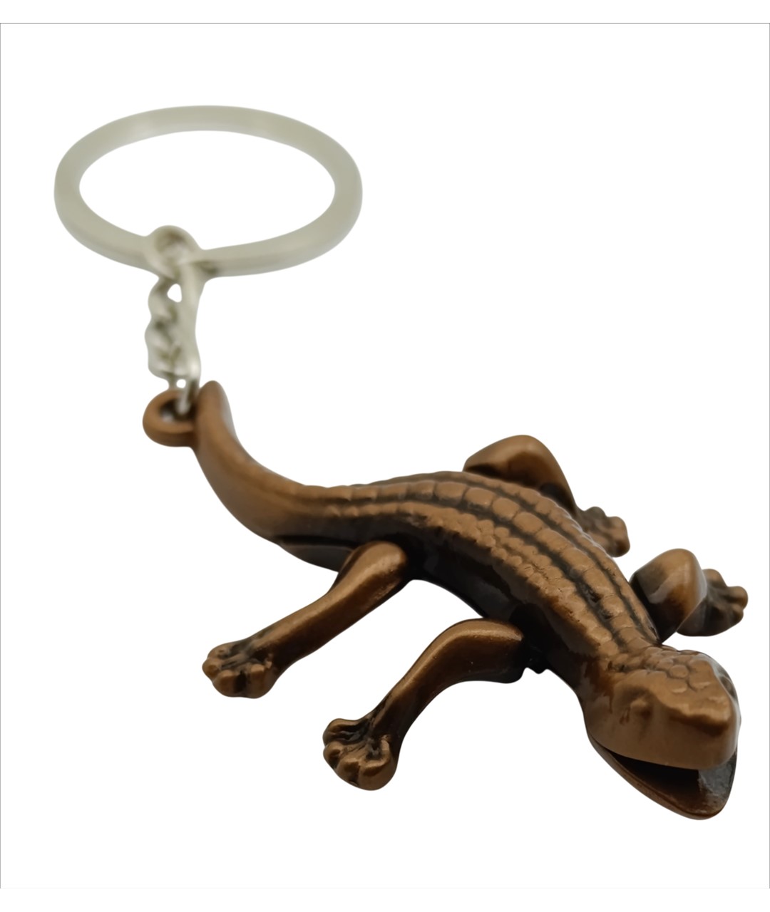 Doğadan ilham alan kertenkele figürlü anahtarlık, detaylı gövde yapısı ve eskitme bronz görünümü ile dikkat çeken özel bir tasarıma sahiptir. Üç boyutlu formu sayesinde gerçekçi bir görünüm sunar ve anahtarlarınıza farklı bir karakter katar.