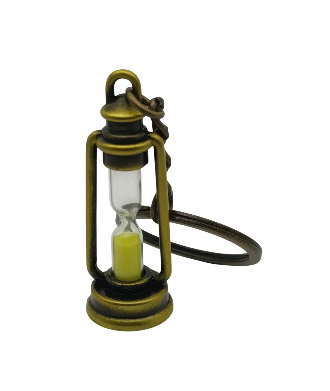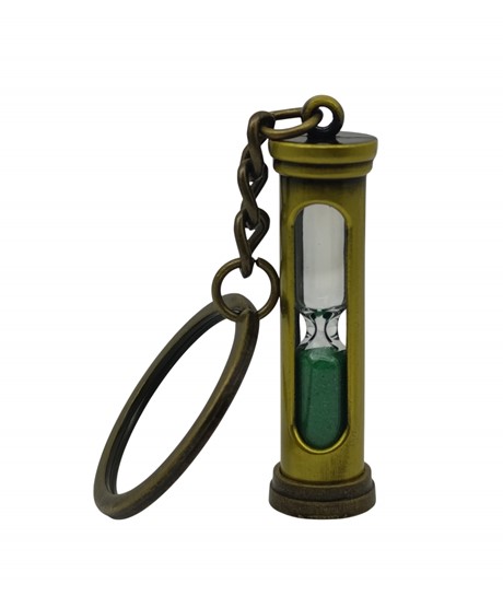 Kum saati figürlü anahtarlık, nostaljik tasarımı ve eskitme bronz görünümlü metal gövdesi ile dikkat çeken özel bir aksesuardır. İç kısmında yer alan cam hazne ve renkli kum detayı, ürüne hem estetik hem de anlamlı bir görünüm kazandırır.