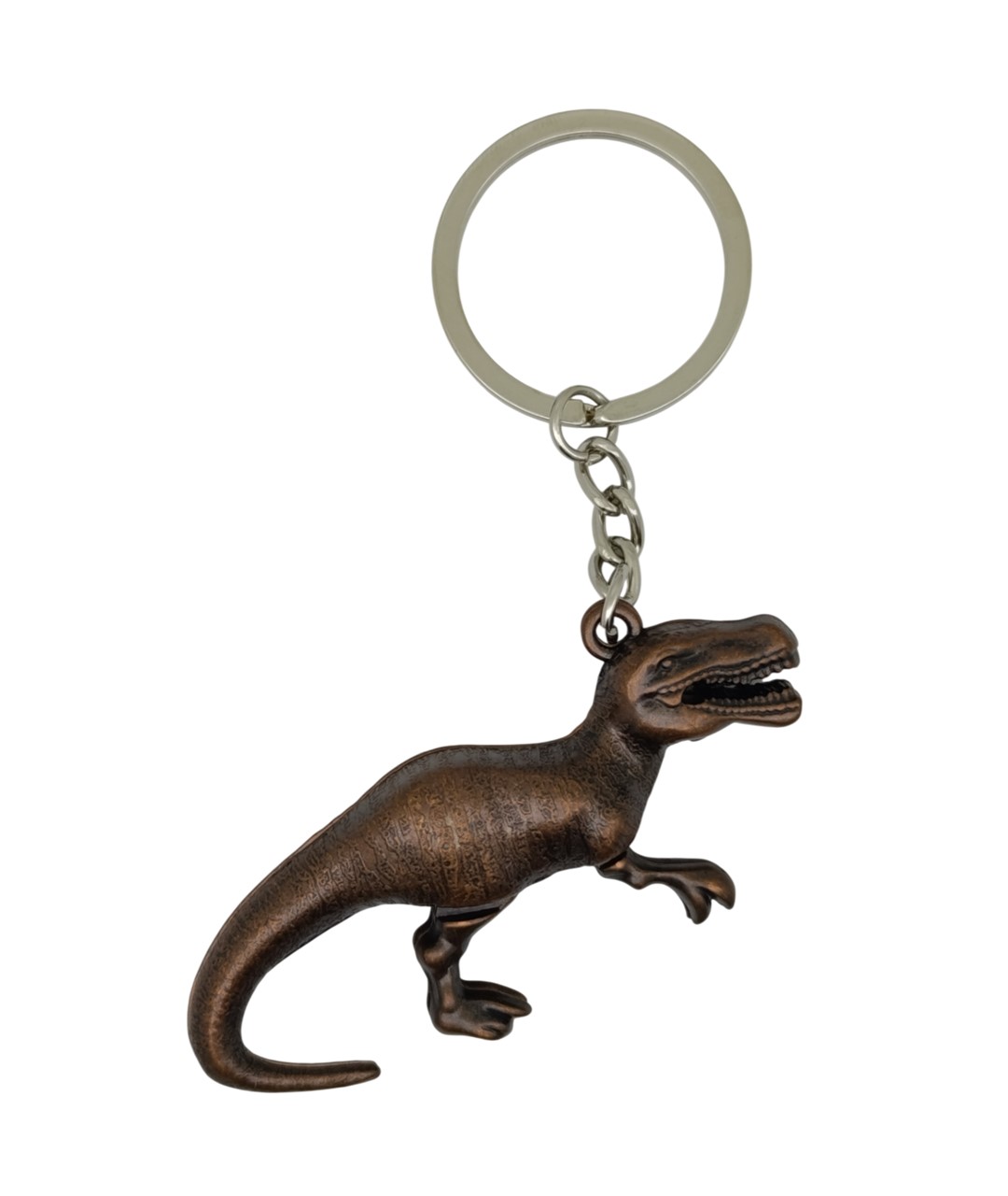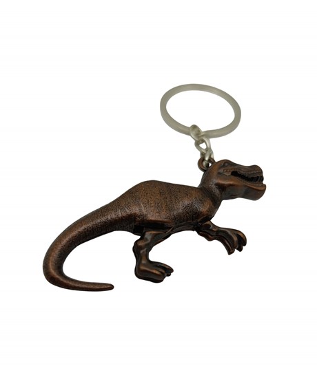 Dinozor figürlü metal anahtarlık, tarih öncesi temalı tasarımıyla dikkat çeken özgün bir aksesuardır. Gerçekçi detaylara sahip gövde yapısı, diş ve kuyruk formu ile dinamik bir görünüm sunar. Bronz eskitme görünümü sayesinde hem nostaljik hem de karakterli bir stil oluşturur.