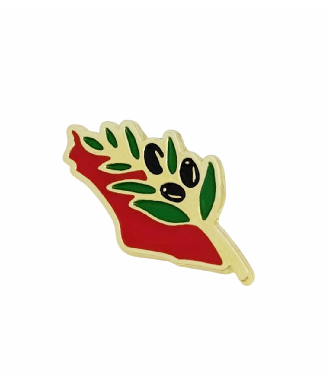 Zeytin dalı ve harita formunun birleşiminden oluşan bu özel tasarım rozet, anlam yüklü ve estetik bir aksesuardır. Sarı kaplama metal zemin üzerine uygulanan kırmızı, yeşil ve siyah mine detaylar ürüne canlı ve dikkat çekici bir görünüm kazandırır.